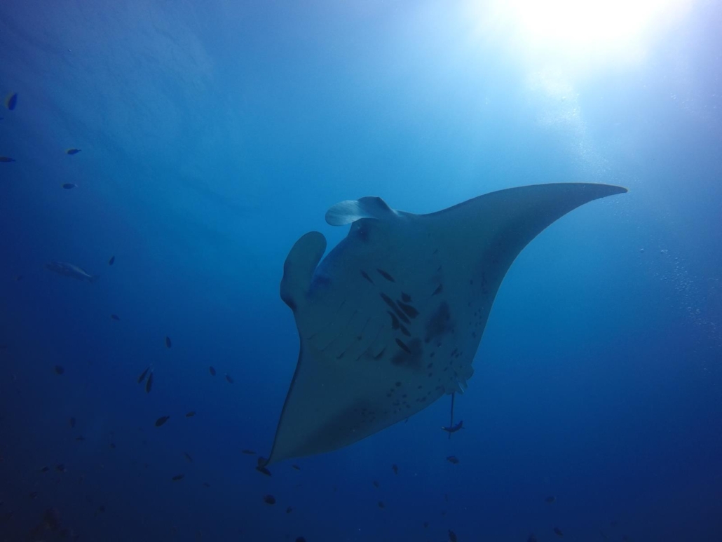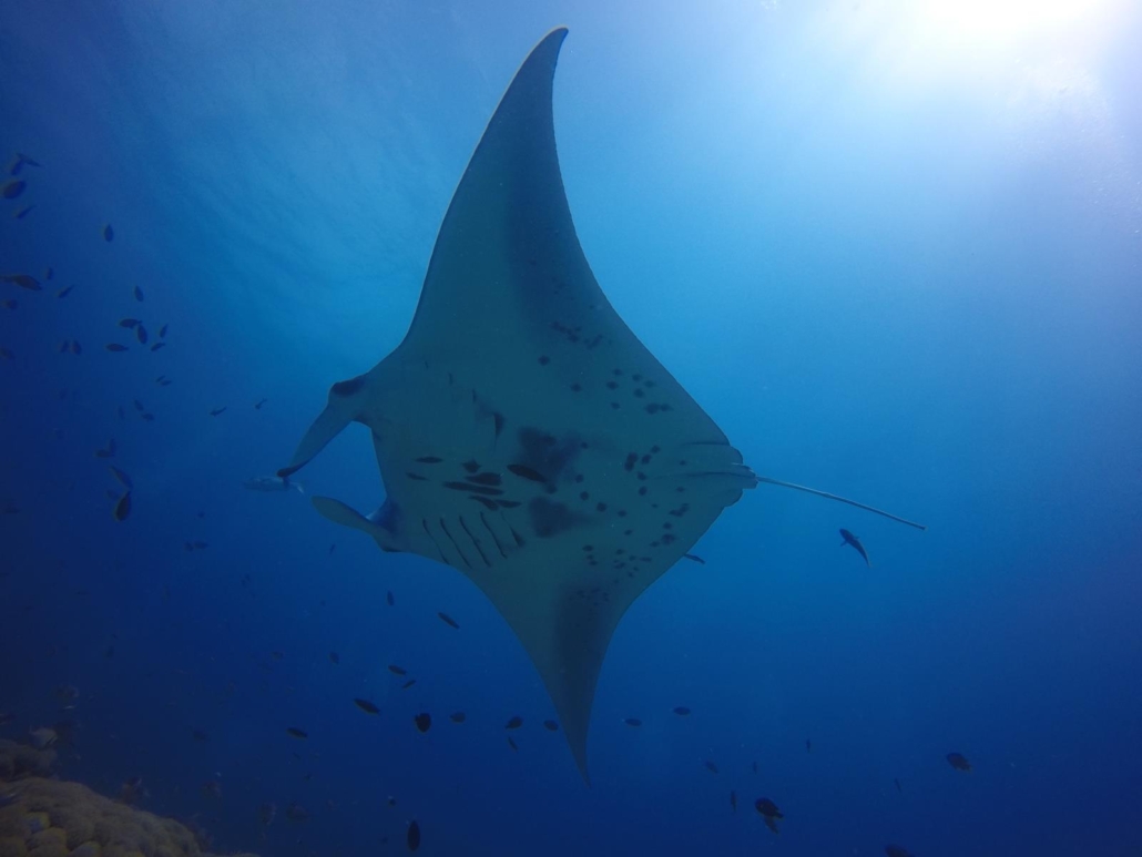 Das Tauchen im Süd-Ari-Atoll ist fantastisch mit einer sehr guten Chance auf Mantas und Walhaie.