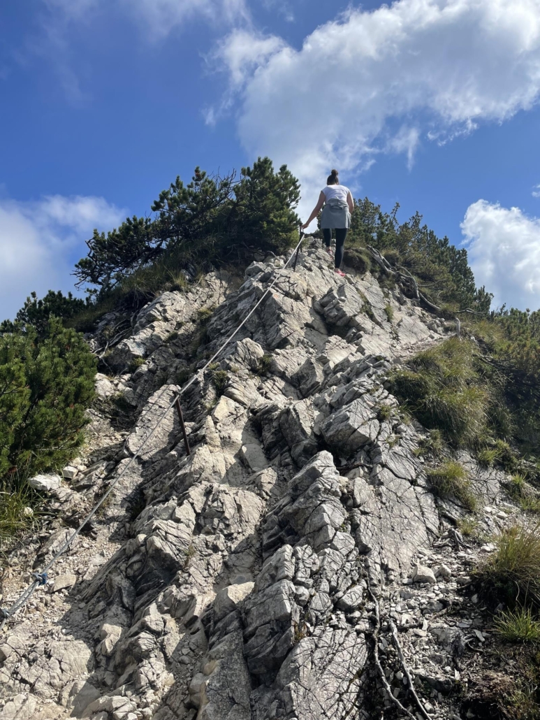 Generell finde ich es schöner, wenn man das Highlight am Ende der Tour hat und wenn man eventuell sogar etwas kaputt ist, kann man sich auch entscheiden mit der Bergbahn nach unten zu fahren. Diese Option zu haben, finde ich sehr wertvoll.