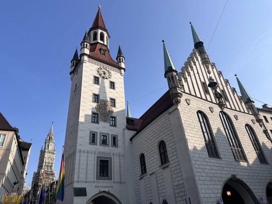 Das alte Rathaus ist dann noch einen kleinen Schwenk weiter im Osten des Marienplatzes. Der Turm ist heute mittlerweile in Spielzeugmuseum.