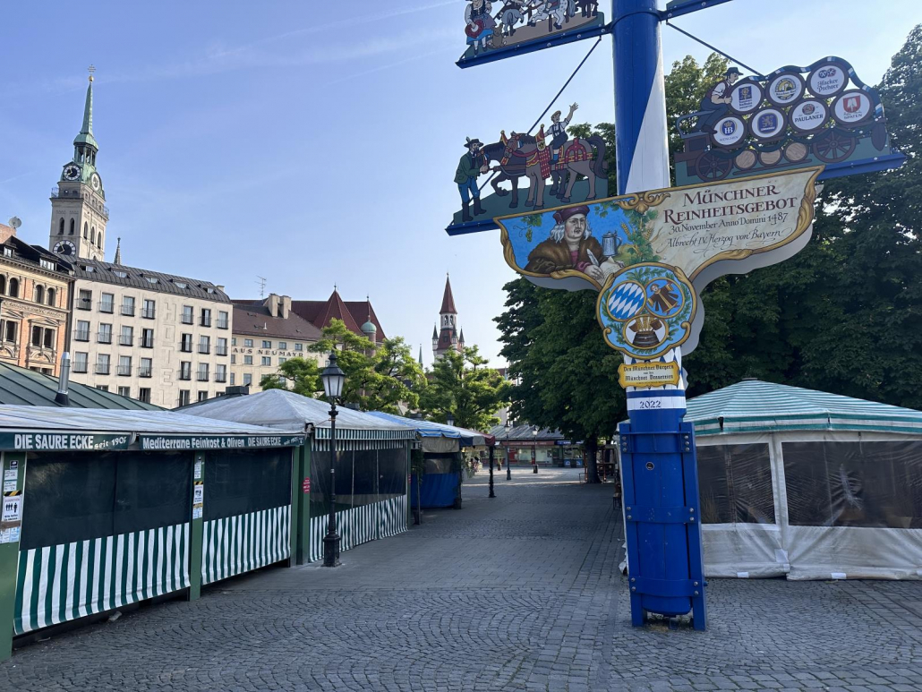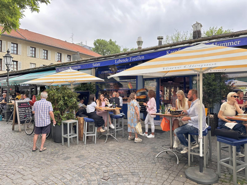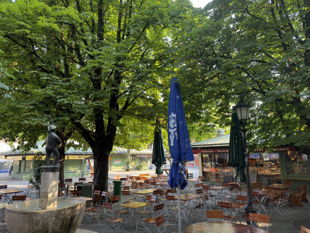Das für mich besondere Merkmal ist die Gestaltung des Marktes zum einen mit den kleinen Hütten für die über 100 Händler und zum anderen mit dem wunderbar atmosphärischen Biergarten im Zentrum des Viktualienmarkts. Zwischenzeitlich wurden auch viele Bänke gebaut und zusätzliche Pflanzenkästen angelegt, so dass man hier richtig gut entspannen und genießen kann.