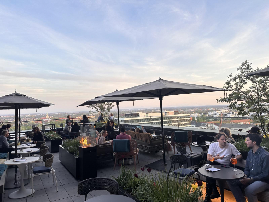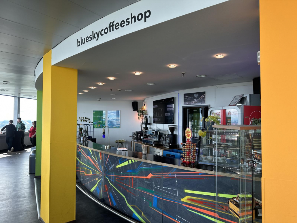 Für mich als Fotograf besonders schön, es handelt sich um eine offene Plattform, sprich „nur“ mit einem Schutzgitter und eben keiner Verglasung. Dadurch sind richtig tolle Aufnahmen möglich, vor allem bei gutem Wetter. Mit viel Glück kann man von hier sogar die Alpen erkennen.