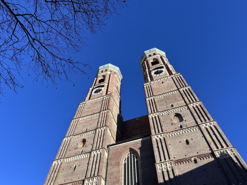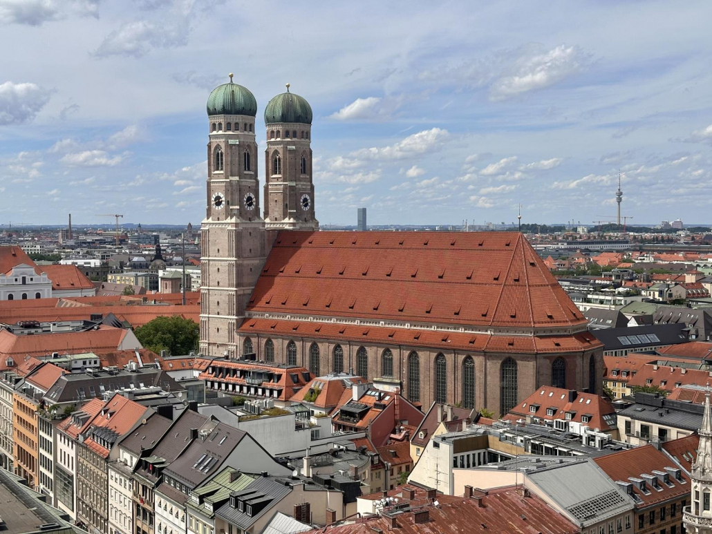 Weiter geht es zu einer Top-Sehenswürdigkeit in München, und zwar zur Frauenkirche oder um genau zu sein, zur Domkirche „Zu Unserer Lieben Frau“, dies ist nämlich ihr offizieller Name. Die beiden Zwiebeltürme sind ein wesentlicher Bestandteil der Münchner Skyline und dementsprechend sprechen wir hier auch von einem echten Münchner Wahrzeichen.
