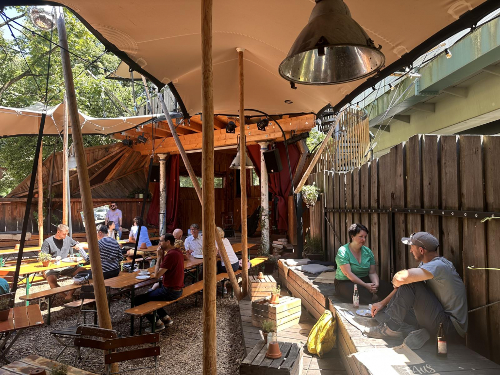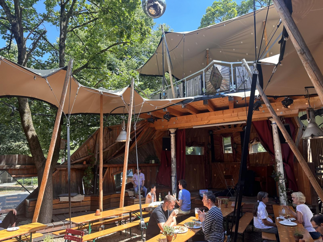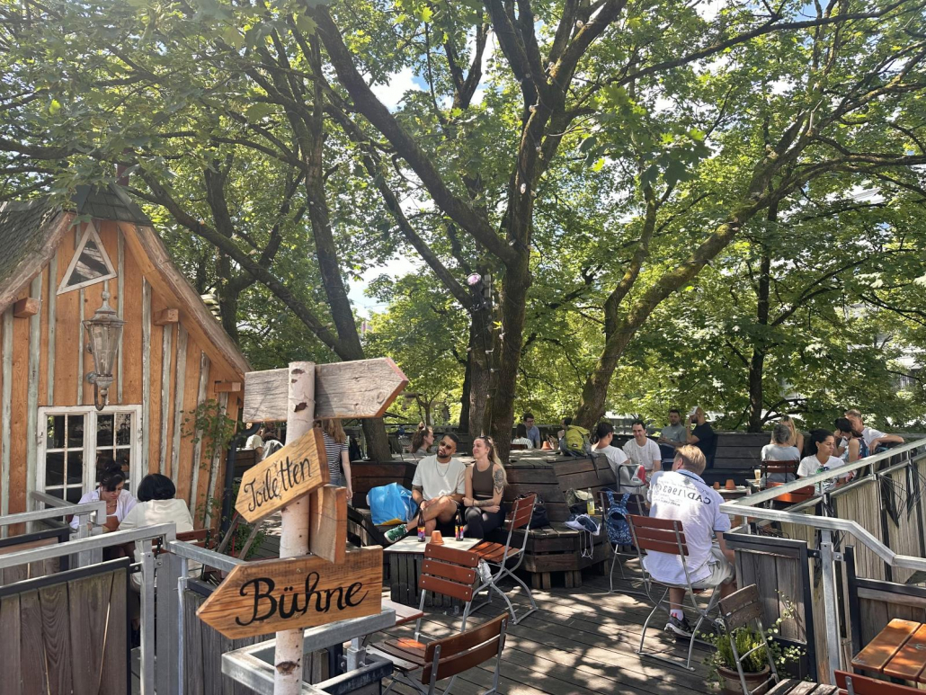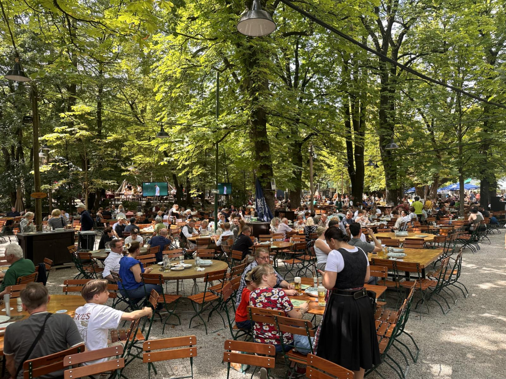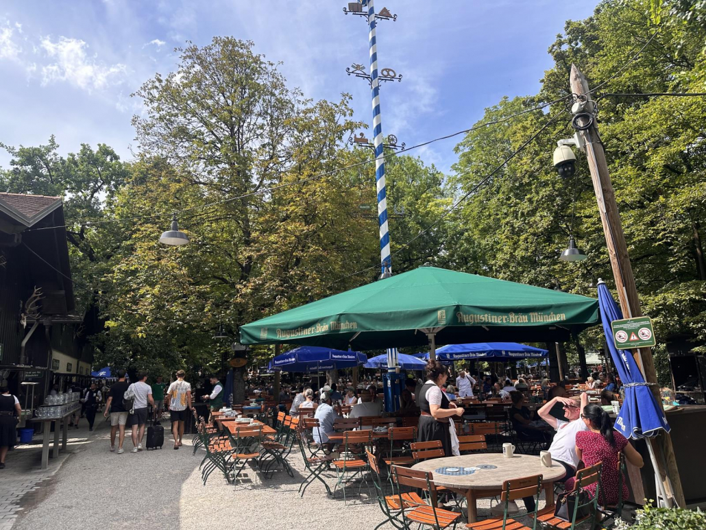 Beachten sollte man unbedingt noch den Maibaum inmitten des Biergartens!