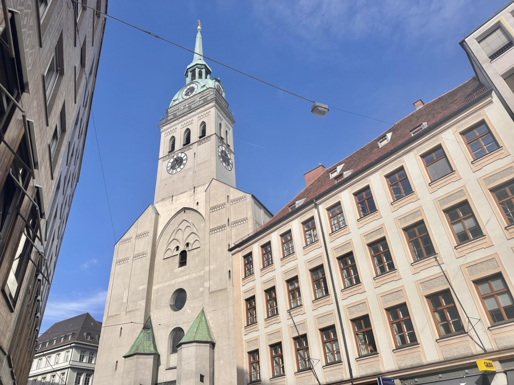 Nur wenige Meter vom Marienplatz entfernt, befindet sich die Münchner Antwort auf das Empire State Building, und zwar die Kirche St. Peter oder auch liebevoll der „Alte Peter“ genannt.