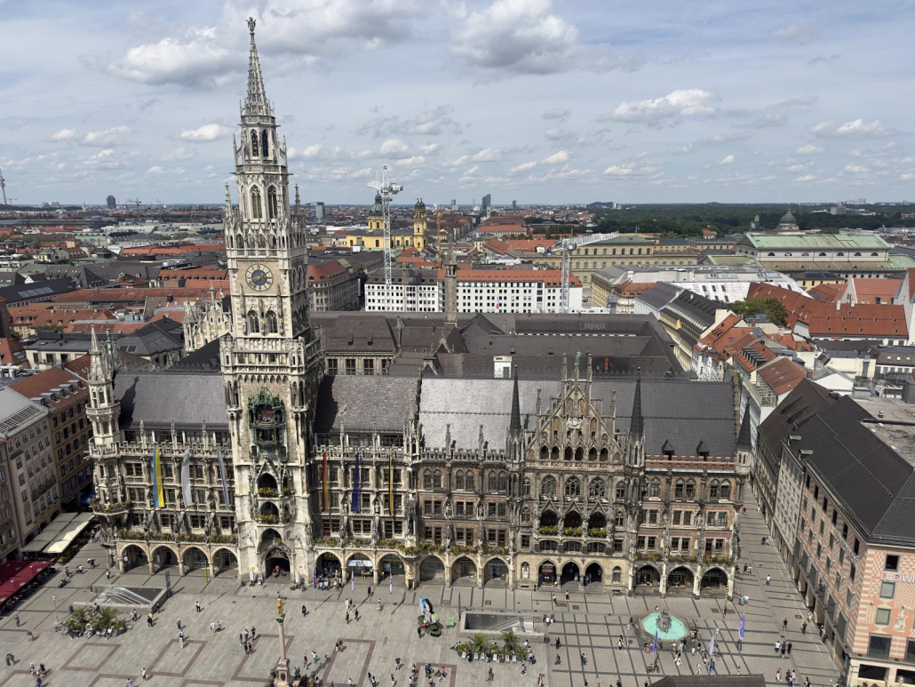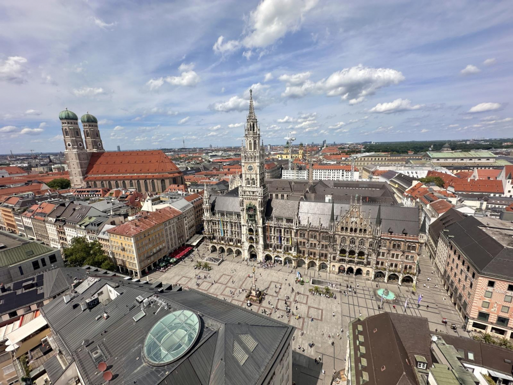 Die Kirche samt Glockenturm befindet sich direkt am Marienplatz und bietet deshalb eine wunderbare Aussicht im Zentrum Münchens. Besonders für Fotografen ist es hier von Vorteil, dass es sich um eine offene Plattform handelt, sprich „nur“ mit einem Schutzgitter und eben keiner Verglasung. Dadurch sind richtig tolle Aufnahmen möglich, vor allem bei gutem Wetter. Mit viel Glück kann man von hier sogar die Alpen erkennen.