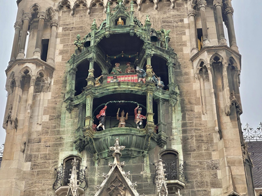 Voll wird es speziell um 11 Uhr und 12 Uhr, plus von März bis Oktober zusätzlich um 17 Uhr, wenn das Glockenspiel am Neuen Rathaus beginnt. Dann drehen sich für ca. drei Minuten die 32 Figuren und die 43 Glocken klingeln passend dazu.