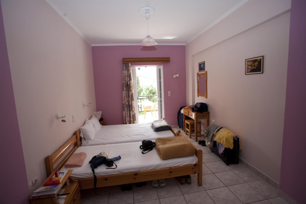 Die perfekte Abrundung eines Tauchurlaubs in Kalamitsi ist aber die Möglichkeit in dem kleinen Hotel (Porto Kalamitsi) von Vasilis und Sylvia zu wohnen. Das Grundstück, auf dem sich schon die Tauchbasis und die Bar befinden, hat nach hinten noch sehr viel Platz und war bis vor Kurzem ein kleiner Campingplatz. Letztes Jahr haben die beiden dann den Entschluss gefasst, Nägel mit Köpfen zu machen, und ein Hotel zu bauen, um alles aus einer Hand anbieten zu können. Es wurde viel geplant und nachgedacht, jeder hat Ideen aus den umliegenden Ortschaften, Nachbarhäusern und anderen Hotels mitgebracht, um so den Traum vom eigenen Hotel möglichst ideal umzusetzen.