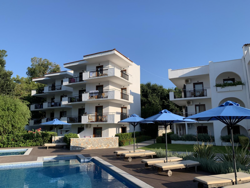 Der Ansatz bei der Suche für ein passendes Hotel war, dass ich NICHT in Skiathos Stadt, aber auch nicht zu weit entfernt sein wollte. Plus, ich wollte gerne den extrem touristischen Bereich im Süden meiden. Und da kam der Ort Troulos ins Spiel! Nach Skiathos Stadt sind es ca. 15 Minuten mit dem Auto und in die andere Richtung zum Strand Krifi Amos sind es auch nur ca. 10 Minuten.