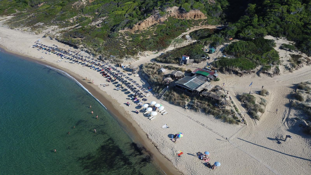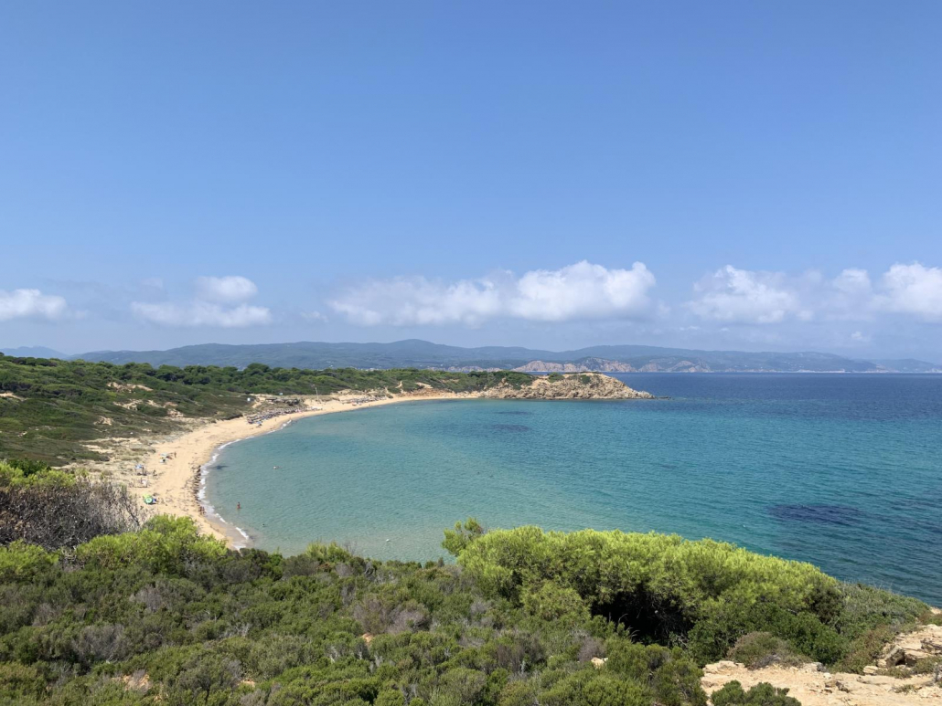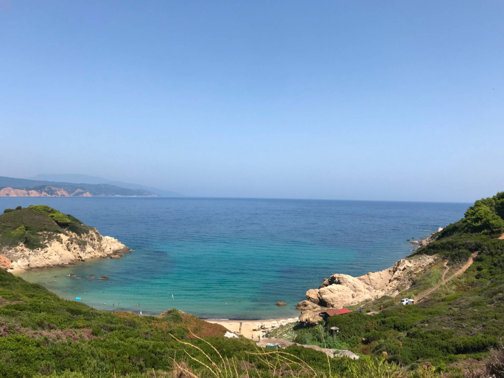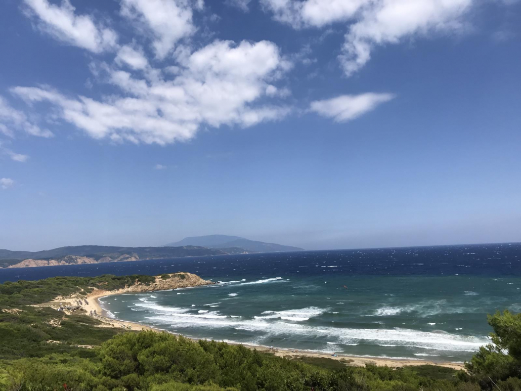 Deutlich übersichtlicher, aber nicht minder schön ist der Agkistros Beach, der direkt an den Elia Beach angrenzt und nur von einem kleinen Hügel getrennt wird. Tatsächlich könnte man hier zu Fuß von einem zu dem anderen Strand wechseln, aber ich fand vor allem den Panarama-Point auf dem Hügel großartig. Von dort kann man nämlich beide Strände ganz wunderbar überblicken.