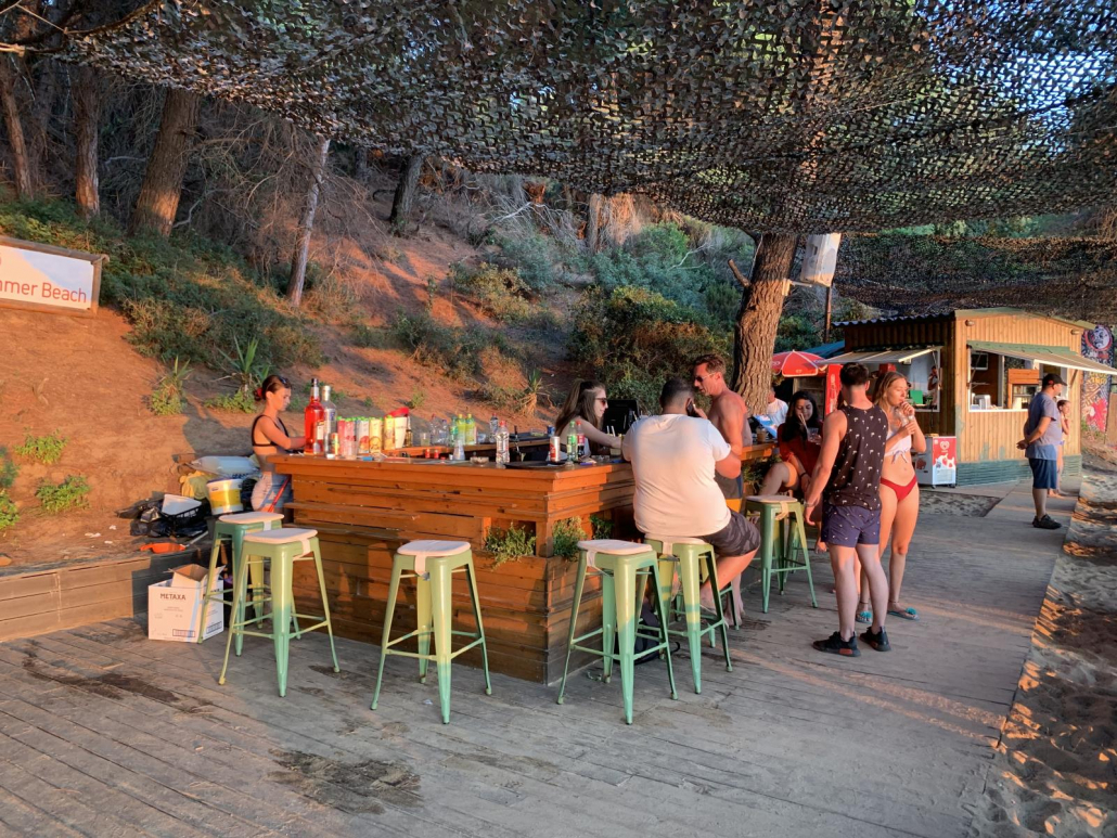 Der ganz im Westen befindliche, breite Sandstrand Eleni Beach ist für mich gerade so an der Grenze zu einem „zu touristischen Strand“. Es handelt sich um den letzten, von Bussen angefahren Strandbereich, weshalb es hier (in den Sommermonaten) definitiv voll wird. Aber, ich habe es nicht als ZU aufdringlich empfunden, plus von hier kann man absolut traumhaft schön den Sonnenuntergang beobachten. Wenn die „ins Wasser schmelzende“ Sonne den Küstenbereich in ein warmes Licht taucht, ist die Atmosphäre schon sehr angenehm. Vor allem die Bar Summer Beach ist ab dem späten Nachmittag ein schöner Spot.