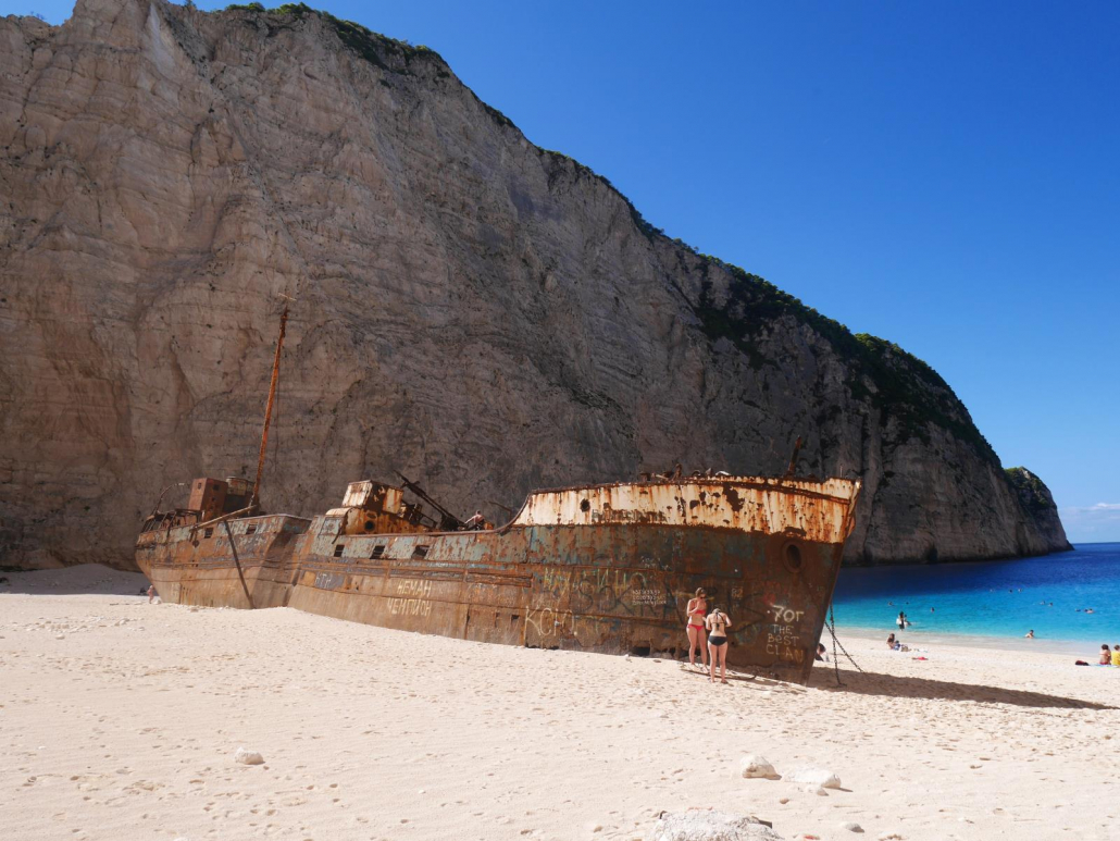 Als ich Mitte der 2000er das erste Mal in Zakynthos war, wusste tatsächlich niemand von welcher Insel ich denn da spreche. Wenn ich dagegen heute Zakynthos als Mittelmeerempfehlung weitergebe, höre ich oftmals die Frage „ob das die Insel mit dem Schiffswrack-Strand ist?!“. Genau so ist es! Die Navagio-Bucht auf der Westseite von Zakynthos mit dem rostigen Kahn umgeben von einem traumhaft weißen Sandstrand und glasklarem, blauen Wasser ist eines der berühmtesten Fotomotive Griechenlands. Gefühlt auf einer Stufe mit der Akropolis in Athen und den weißen Häusern an der Steilküste von Santorini.