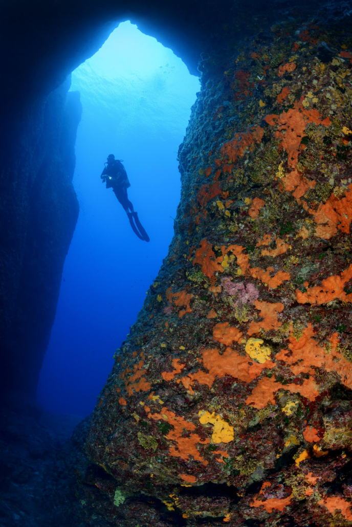 Durch geologische Verformungen sind entlang der Küste zahlreiche Grotten entstanden. Dabei handelt es sich teilweise um mächtige arkadenähnliche Höhlen, in denen man wunderschöne Lichtspiele, die durch die Spiegelung der Sonne auf dem klarem Wasser auftreten, bestaunen kann. Besonders spektakulär sind die drei Torbögen direkt hintereinander – ein super Foto.