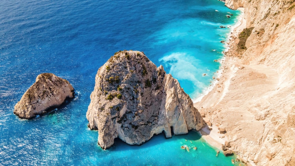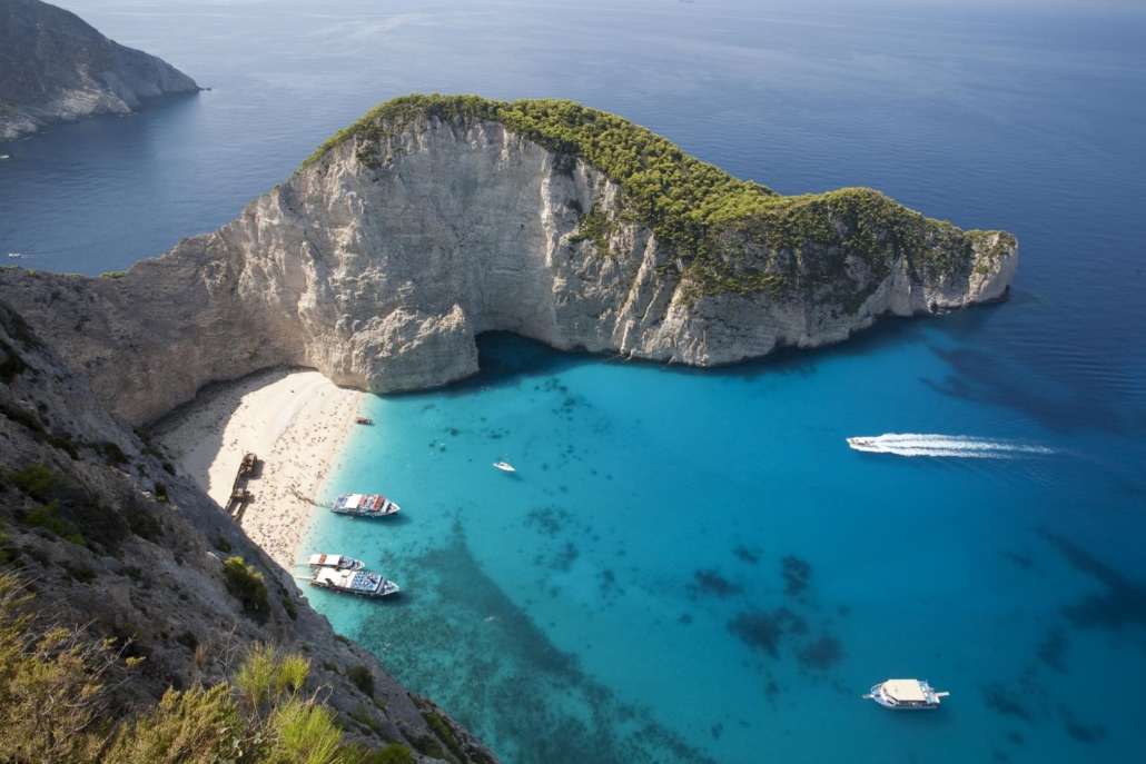 • Die berühmte Navagio- oder Schmugglerbucht mit dem gestrandeten Schiffswrack ist eines der bekanntesten Fotomotive Griechenlands.