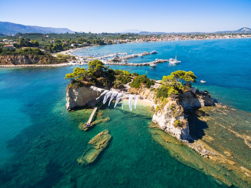 Die vorgelagerte Insel befindet sich ca. 2,5km südlich vor Zakynthos und ist ein sehr beliebtes Ausflugsziel. Aufgrund seiner wunderbar weißen, flach abfallenden Sandstrände und dem türkisfarbenen Wasser wirkt es fast schon maledivesque.