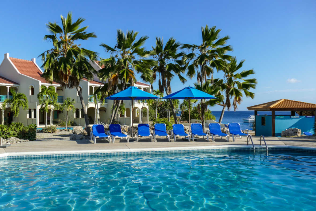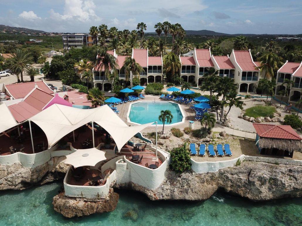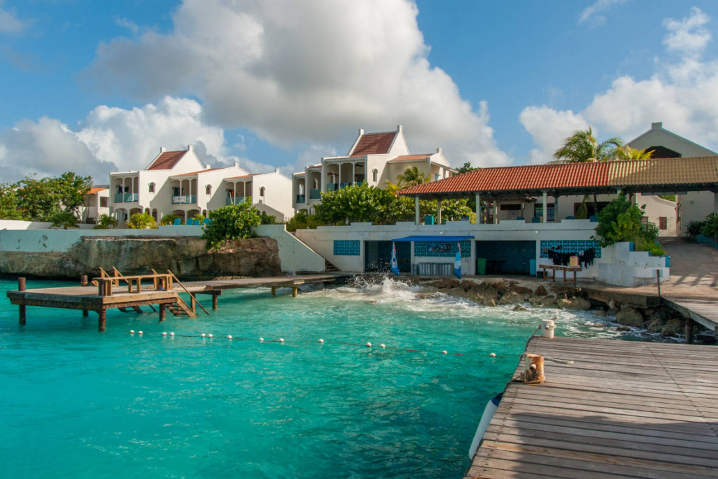 Zum einen die Sun Reef Appartements, leicht westlich von Willemstad direkt am Meer an einer Felsküste. Hier haben das holländische Ehepaar Wim und Liesbeth sich einen Traum verwirklicht und stilvolle Bungalows inmitten eines tropischen Gartens errichtet. Über Treppen kann man ins kühle Wasser gelangen und ansonsten kann man ganz einfach in dieser kleinen Oase die Karibik genießen. Die Lage ist nahezu ideal, weil man schnell in Willemstad ist und gleichzeitig eine gute Verbindung zu den besten Tauchplätzen von Curacao im Westen hat. Direkt in der Anlage befindet sich außerdem die deutsche Tauchbasis der Curacao Divers unter der Leitung von Harald Weinrich. Alles in allem ein tolles Paket und ein echter Klassiker auf Curacao!