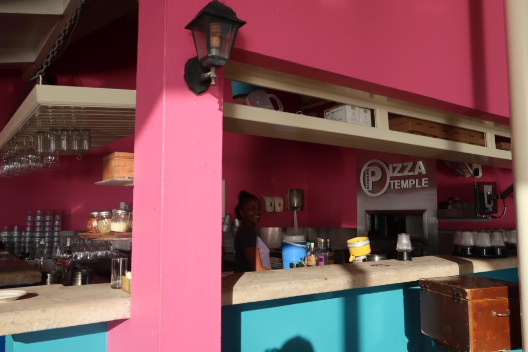 Der Flughafen auf Bonaire heißt Flamingo Airport und ist auch hierzu passend in der entsprechend pinken Farbe gestrichen. Da weiß man bei der Ankunft gleich mal, wo man ist, denn in Kopenhagen oder Wien sehen die Flughäfen definitiv anders aus. Die Flamingos sind übrigens so etwas wie das Wappentier von Bonaire und insofern begegnet man der Farbe pink auf dieser charmanten Insel durchaus öfter mal. Als sich die Flugzeugtüren öffnen steht die kalte, klare Luft von Amsterdam auf jeden Fall in heftigem Kontrast zu der feuchtwarmen Luft von Bonaire. Willkommen in der Karibik…