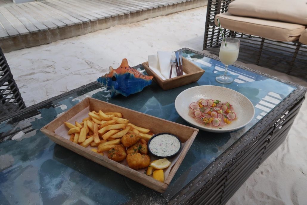 Ich hatte vorher außerdem das tolle Restaurant im Captain Don’s Habitat erwähnt. Ich will ehrlich sein, ich liebe diesen Spot. Auf der einen Seite der Pizzaofen, der quasi die dauerhafte Verlockung darstellt und auf der anderen Seite das offene Meer. Dass man so ein prima Restaurant direkt im Hotel hat, ist definitiv ein klasse Vorteil. Wie oft bin ich abends hier „nach Hause“ gekommen, glücklich und müde von drei oder mehr Tauchgängen, Salzwasser im Haar und mit einem leichten Sonnenbrand auf der Nase. Jetzt noch duschen, fertig machen und Essen gehen…?! Nervig. Eigentlich habe ich nur noch Bock eine gekühlte Coke aus einer 0,33 Ltr. Glasflasche (warum schmeckt die Coke aus genau dieser Flasche eigentlich deutlich am besten?) runterzugluckern und eine Pizza aus dem Karton auf der Terrasse wegzumampfen. Kein Problem, kurz ins Restaurant wackeln, bestellen, aufs Zimmer schreiben und wenig später abholen. In der Zwischenzeit habe ich mein ganzes Zeug aufgehängt und verräumt und kann den Abend danach entspannt ausklingen lassen. Absolut perfekt.