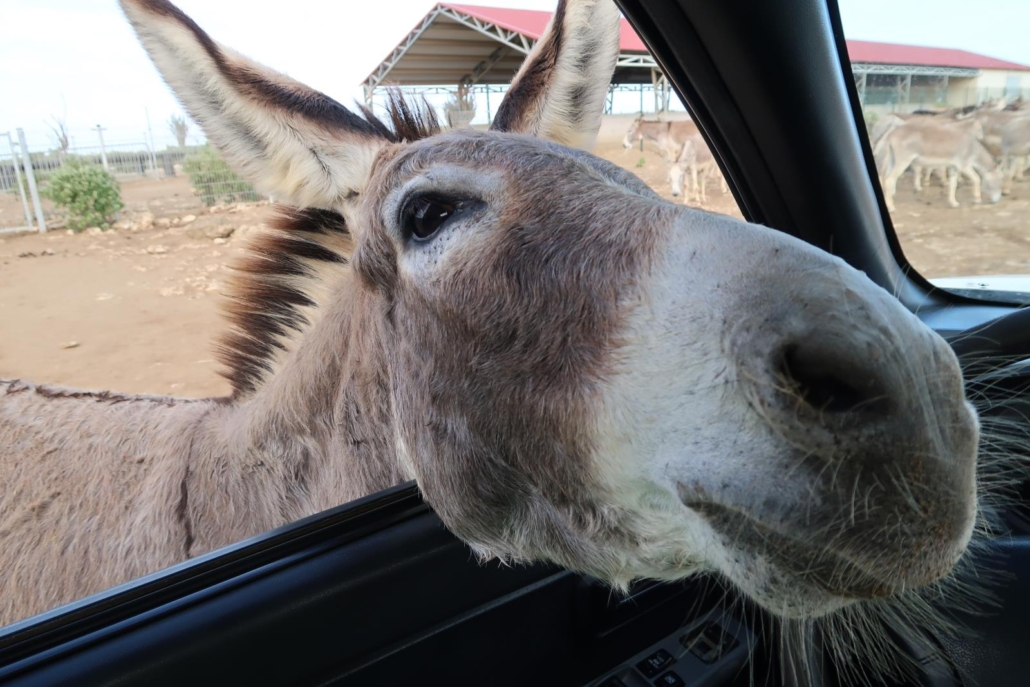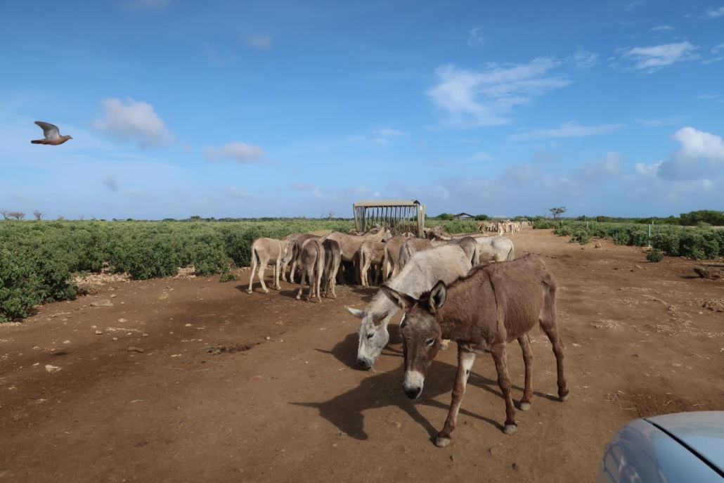 Dazu gibt es ausgesprochen unterhaltsame Spots, wie den Donkey Sanctuary, eine Eselsfarm. Auf Bonaire gibt es nämlich so viele freilaufende Esel, dass sie bedauerlicherweise oftmals nachts von Autos angefahren werden/wurden. Damit man diesen Eseln helfen und das Grundproblem von Haus aus beheben kann, wurde vor vielen Jahren diese Farm installiert, auf der viele viele Esel in einem riesigen und geschützten Bereich quasi einen Himmel auf Erden gefunden haben. Wer jetzt denkt, ich erzähle von einem schnöden Zoo, der irrt. Es handelt sich zwar um ein Gehege, aber dieses ist so groß, dass man mit dem Auto von einer Seite zur anderen ca. zwanzig Minuten braucht. Dazwischen gibt es Sträucher und Futterplätze, die von den Eseln immer wieder gierig aufgesucht werden. Besucher können im Shop Karotten kaufen oder wahlweise diese schon aus dem Supermarkt mitbringen, um sie dann an die dankbaren Abnehmer zu verfüttern. Ich will ehrlich sein, das ist ein Spaß, bei dem Erwachsene zu Kindern werden. Wenn die Esel ihren Kopf in das Auto stecken, muss man lachen – ob man will oder nicht. Die anfängliche Skepsis ist schnell verflogen und es macht schlichtweg einfach nur Spaß, den Weihnachtsmann für die Esel zu spielen.