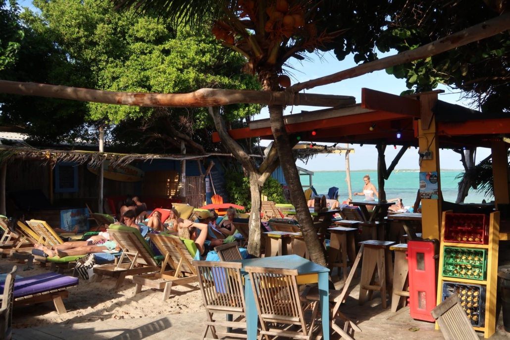 Ein weiterer sehenswerter Ort ist außerdem der Sorobon Beach auf der windzugewandten Ostseite der Insel. Auf der geschützten Westseite haben die Taucher ihr Zuhause, auf der Ostseite können sich die Surfer austoben. Es handelt sich dabei um eine recht flache Sandlagune, die den Surfern quasi perfekte Bedingungen bietet. Und da wo Surfer sind, sind coole Beachbars meist nicht weit entfernt. Der Strand ist ideal zum Baden und für Snacks und Getränke ist auch gesorgt. Die loungigen Holzhütten sind für mich der perfekte Ort, um entweder morgens einen Cappuccino zu genießen oder abends einen Mojito zu schlürfen. Von mir aus auch umgekehrt – je nach Bedarf und Laune.