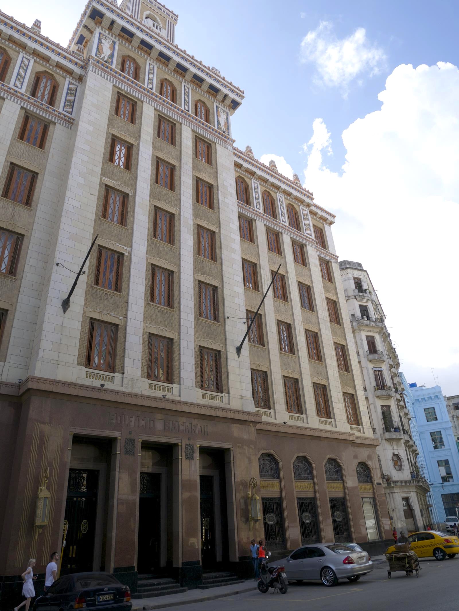 Hier erhebt sich nämlich eines der schönsten Art-déco-Bauwerke Havannas, welches man anhand des Turms mit der riesigen, bronzenen Fledermaus sehr schnell erkennen kann: das Edifico Bacardi.
