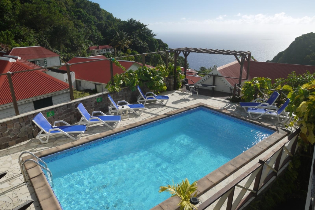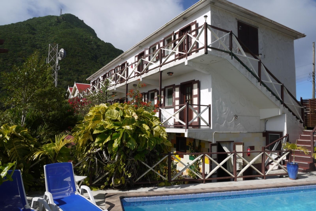 Das Hotel Scouts Place ist eigentlich genau die richtige Anlage für einen Tauchurlaub auf Saba, denn man es gibt alles, was man braucht, die Lage in Windwardside ist ideal und die deutsche Betreuung im Hotel ist ein zusätzliches Plus. Auf Saba gibt es nur zwei Ortschaften, nämlich „The Bottom“ und eben Windwardside. The Bottom liegt, wie der Name schon charmant beschreibt, im „unteren Teil“ der Insel, also im Tal, während sich Windwardside in die Berge hinein verirrt hat. Das Dorf „Hell’s Gate“ zählen wir mal nicht, denn dabei handelt sich es nur um wenige Häuschen, aber es unterstreicht, dass die Namensgeber der Ortschaften sehr anschaulich dachten. Hell’s Gate ist nämlich so etwas wie der Vorort des Flughafens… In The Bottom gibt es zwei wesentliche Dinge, das Gouverneurs-Haus und die Universität. Diese haucht Saba mehr Leben ein als man meinen möchte. In Windwardside dagegen findet man kleine, atmosphärische Restaurants, schnucklige Geschäfte, einen Supermarkt und das Tourismusbüro. Eines der Restaurants imitiert ein wenig einen Saloon, wie aus einem Lucky Luke Comic, weshalb man fast schon nach Jolly Jumper sucht. Es gibt dort tolle Steaks und das Restaurant passt perfekt zu Saba – der Name: Swinging Doors. Der Name ist Programm!