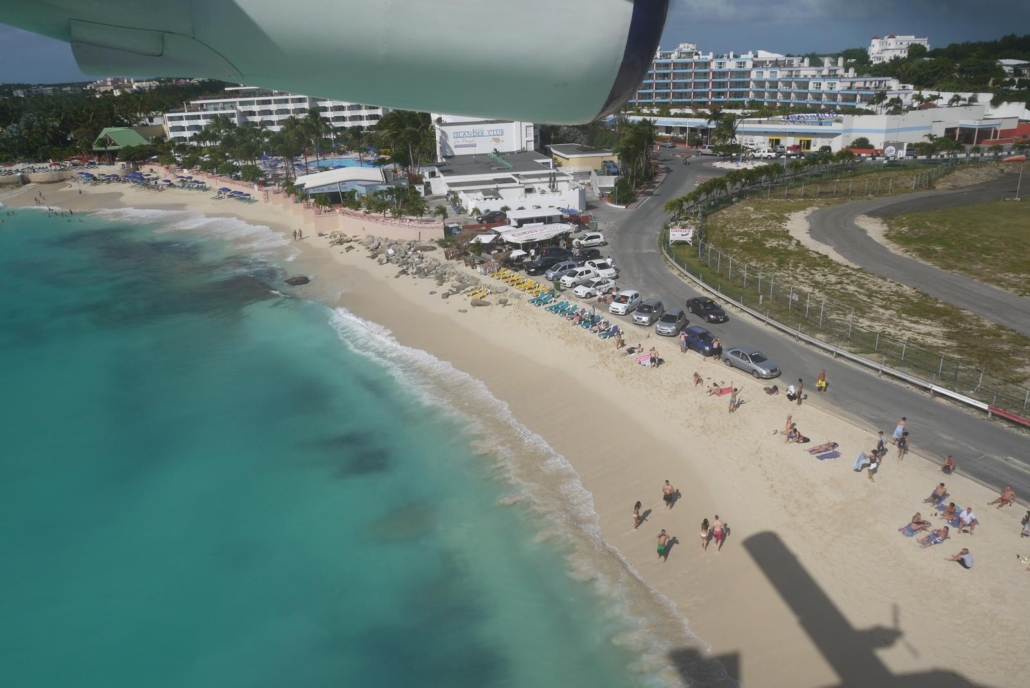 Beim Rückflug ist der Start genauso spannend, wie die Landung beim Hinflug. Die Startbahn ist einfach auffällig kurz, aber es kommt mir vor, als ob der Pilot auch auf einem Bierdeckel starten könnte, denn wir heben deutlich vor dem Ende, was gleichbedeutend mit Wasser ist, ab. In der Luft freue ich mich schon auf die Landung in St. Maarten, denn genauso wie es von unten am Strand Spaß macht, die hereinkommenden Flieger zu beobachten, so macht es Laune, die Perspektive von oben zu genießen. Viele Kameras sind auf unser Flugzeug gerichtet, obwohl wir nur ein kleiner Hüpfer sind, aber es ist trotzdem ein prima Abschluss einer tollen Reise…