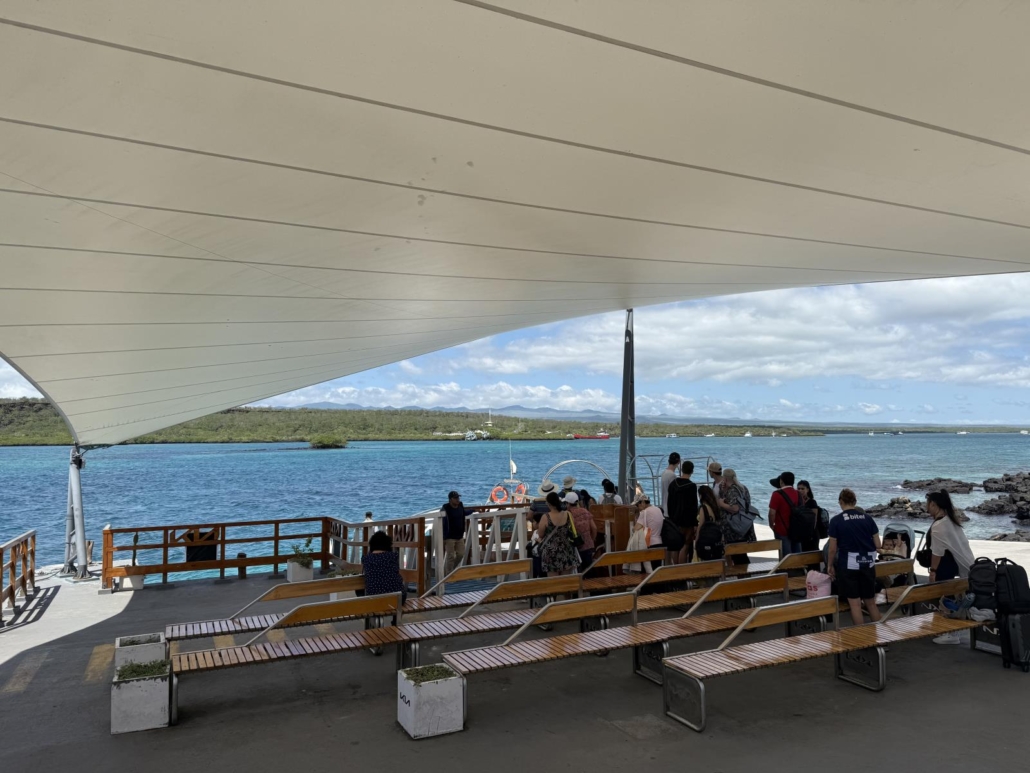 Erster Anlaufpunkt ist erstmal die Insel Santa Cruz. Diese liegt direkt neben der Insel Baltra, auf der sich allerdings wirklich nur der Flughafen befindet. Dennoch muss man mit einer kleinen Fähre (Dauer ca. 5 Minuten) nach Santa Cruz übersetzen. Von dort geht es per Bus oder Taxi Richtung der Hauptstadt Puerto Ayero, die auf der genau anderen Seite der Insel liegt (Dauer ca. 40 Minuten).