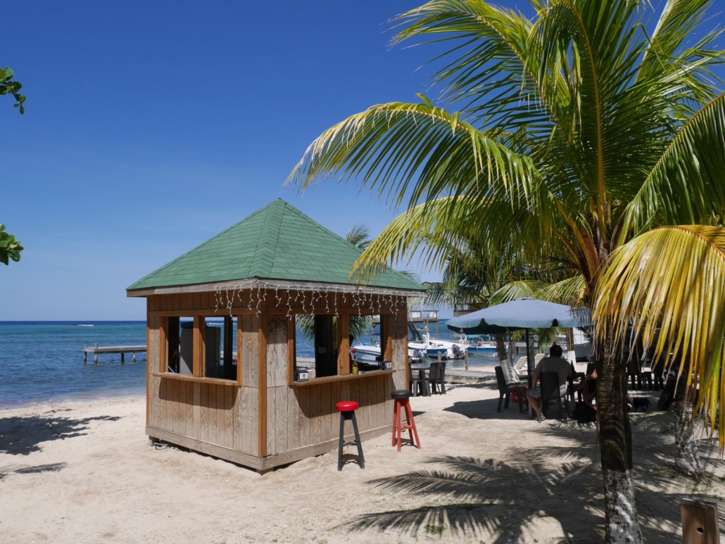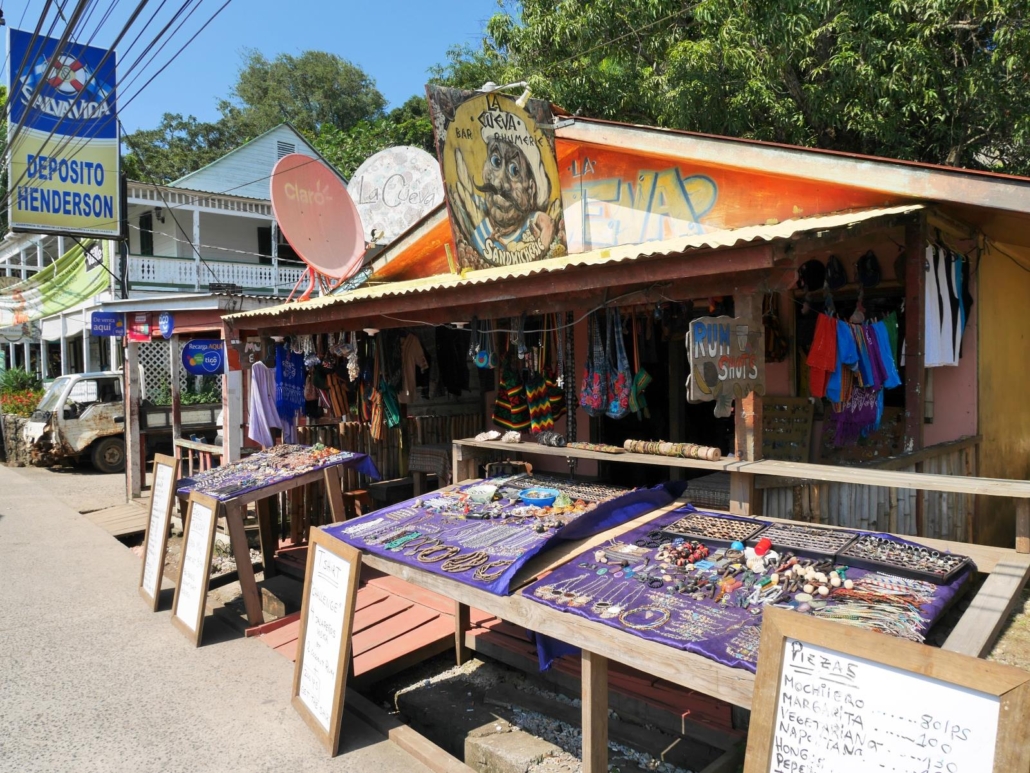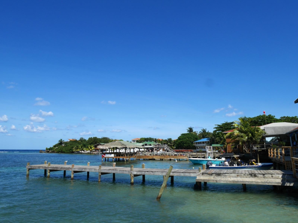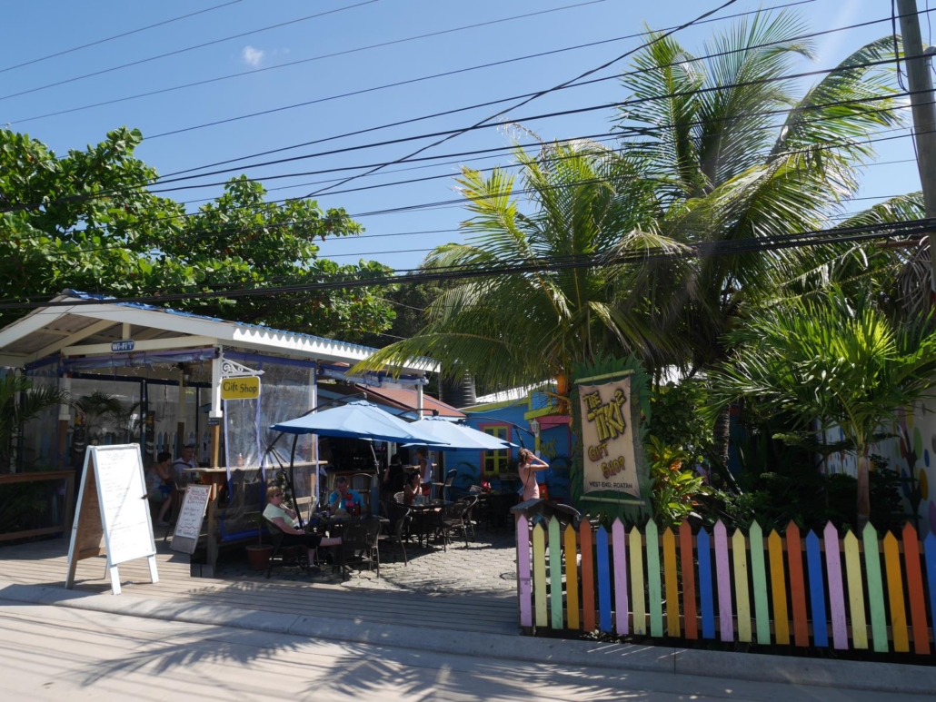 Auf Roatàn kommen wir nicht wie geplant am Hafen, sondern an einem privaten Steg in Westend an. Westend ist so etwas wie der touristische Hotspot von Roatán, hier gibt es mehrere schöne Strandbereiche mit postkartentauglichen Palmen, Cafés und Bars mit Blick aufs Meer und viele kleine, karibische Geschäfte, wo man Dinge wie Hängematten, Taschen und Töpfe kaufen kann. Bei meinem letzten Besuch war die Straße am Ufer entlang noch eine Sandpiste, mittlerweile ist sie sauber mit Steinen gepflastert. Keine Frage, hier sieht man die meisten Gäste und Touristen in Roatán, vor allem dann wenn ein Kreuzfahrtschiff  vor der Insel zu Anker liegt. Dennoch, für Gäste, die auf Roatán Urlaub machen ist das gar kein Problem, denn idealerweise besucht man Westend am Nachmittag, um etwas zu bummeln und dann auf dem Steg eines Restaurants oder einer Bar den Bilderbuchsonnenuntergang zu beobachten, den es hier fast jeden Abend zu bestaunen gibt. Das Schöne daran ist, nachmittags und abends sind fast alle Kreuzfahrttouristen wieder weg.