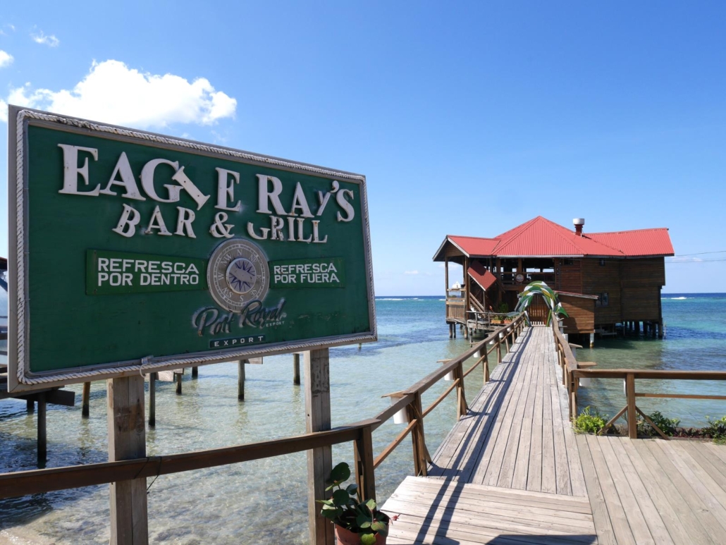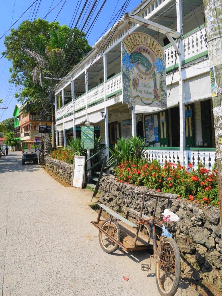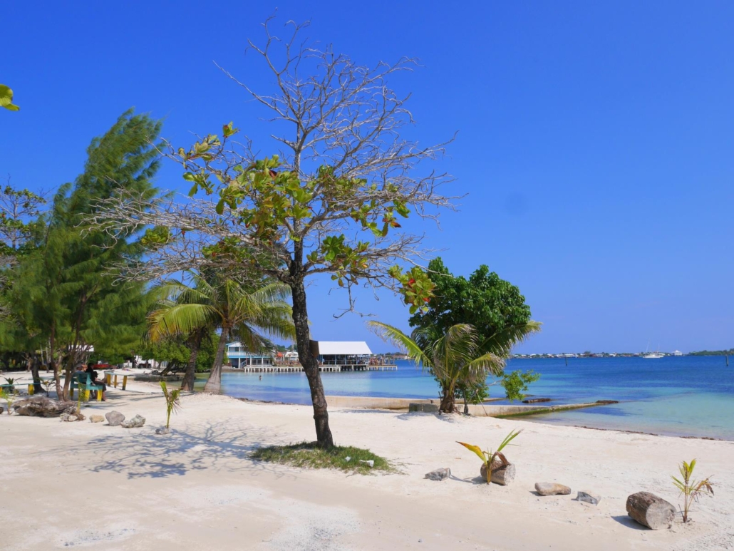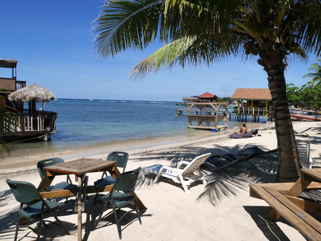 Auf Roatàn kommen wir nicht wie geplant am Hafen, sondern an einem privaten Steg in Westend an. Westend ist so etwas wie der touristische Hotspot von Roatán, hier gibt es mehrere schöne Strandbereiche mit postkartentauglichen Palmen, Cafés und Bars mit Blick aufs Meer und viele kleine, karibische Geschäfte, wo man Dinge wie Hängematten, Taschen und Töpfe kaufen kann. Bei meinem letzten Besuch war die Straße am Ufer entlang noch eine Sandpiste, mittlerweile ist sie sauber mit Steinen gepflastert. Keine Frage, hier sieht man die meisten Gäste und Touristen in Roatán, vor allem dann wenn ein Kreuzfahrtschiff  vor der Insel zu Anker liegt. Dennoch, für Gäste, die auf Roatán Urlaub machen ist das gar kein Problem, denn idealerweise besucht man Westend am Nachmittag, um etwas zu bummeln und dann auf dem Steg eines Restaurants oder einer Bar den Bilderbuchsonnenuntergang zu beobachten, den es hier fast jeden Abend zu bestaunen gibt. Das Schöne daran ist, nachmittags und abends sind fast alle Kreuzfahrttouristen wieder weg.