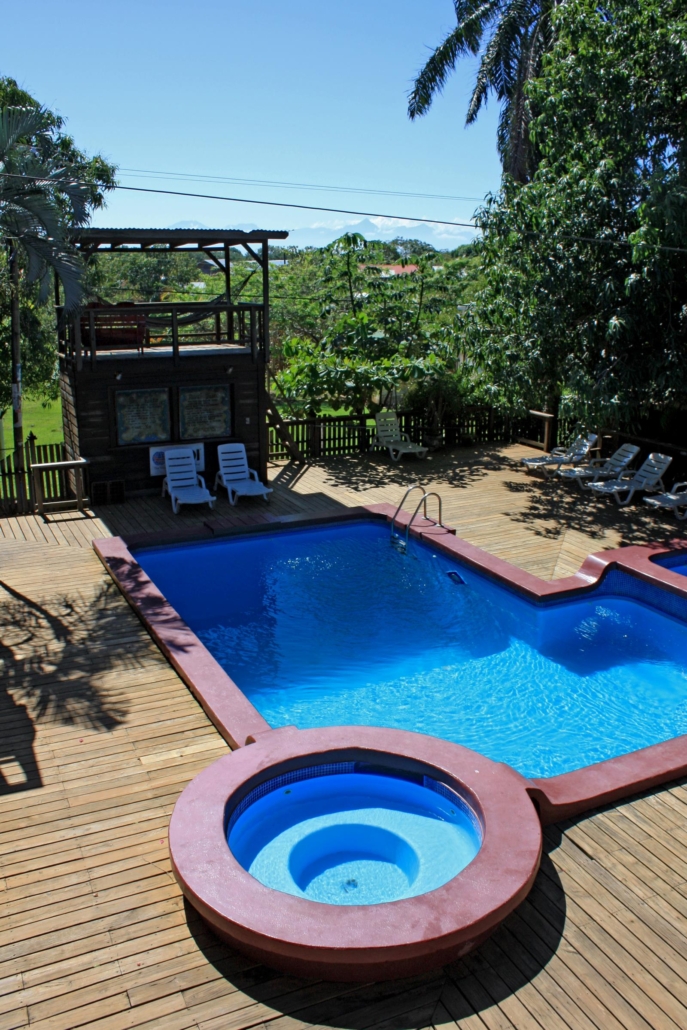 Als wir am Hafen ankommen, herrscht hektische Betriebsamkeit, denn einige Mitarbeiter von Tauchschulen versuchen Backpacker, die ohne Hotelbuchung oder vorgebuchten Tauchkurs anreisen, gleich zu kassieren und von sich zu überzeugen. Wir werden erfreulicherweise bereits erwartet, unserer Gepäck wird sofort in einen Bus verladen, doch Platz für Passagiere ist mit den vielen Taschen keiner. Also beschließen wie, den kurzen Weg zum Hotel gemeinsam gehen. So ein lockernder 5-Minuten-Spaziergang kann nie schaden. Ohnehin ist die Insel klein, man kann problemlos alles zu Fuß erledigen oder von einem Ende des Ortes zum anderen schlendern. Es gibt nämlich eigentlich nur zwei richtige Straßen, an denen sich das ganze Leben der Insel abspielt. Unser Hotel Mango Inn ist eines der wenigen Hotels auf Útila, das die Bezeichnung Hotel auch wirklich verdient. Es hat sich ein bisschen was getan in den letzten Jahren, aber im Kern gibt es nur eine Handvoll Hotels, alles andere sind im weitesten Sinn „Unterkünfte“. Das Mango Inn arbeitet mit der größten Tauchschule der Insel zusammen, nämlich dem Útila Dive Center (UDC), und ist deshalb ein sehr guter Partner für uns. Wie auf so einer legeren Insel üblich, gibt es natürlich auch Tauchbasen, deren Kompressor im Wohnzimmer des Betreibers steht, weshalb es wichtig ist, hier eine verlässliche, seriöse Tauchbasis an unserer Seite zu wissen. Der Manager es UDC heißt Jimmy und kennt die Insel wie kein Zweiter. Er ist seit vielen Jahren ein treuer Partner, was uns später noch sehr zu Nutze sein wird. Aber dazu später mehr. Im Mango Inn gibt es fünf unterschiedliche Zimmerkategorien: von einer einfachen Backpacker-Unterkunft bis hin zu einem geräumigen und sehr komfortablen Deluxe Bungalow. Meiner Meinung nach liegt die „Wahrheit“ irgendwie in der Mitte zwischen Deluxe Room oder Standard Bungalow, je nach Geldbeutel und Anspruch. Die Standard Bungalows sind auf jeden Fall sehr ansprechend, weil man durch die Lage im tropischen Garten etwas für sich ist, eine schöne Terrasse hat und die Zimmer an sich genügend Platz bieten. Zudem gibt es in der Hotelanlage einen Pool und ein Restaurant, wo man ganz sicher die besten Pizzen der Insel serviert bekommt. Der Steinofen ist eine Wucht und zaubert immer wieder sagenhafte Pizzen in unterschiedlichen Größen und Belägen auf den Tisch. Bei den Gerichten abseits von Pasta und Pizza, muss man ehrlicherweise sagen, dass die Küche dieses Mal hier und da wohl etwas überambitioniert war und auch mal danebengegriffen hat. Positiv war allerdings, dass die jeweilige, berechtigte Kritik konstruktiv aufgefasst wurde. An der Stelle ein kleiner Tipp von mir, man bucht das Hotel zwar mit Halbpension, aber man sollte sich dadurch nicht „fesseln“ lassen, sondern auch mal außerhalb des Hotels essen gehen. Das Gefühl, dass man „das Essen aber ja bezahlt hat“, sollte einen definitiv nicht abschrecken, denn das Paket ist günstig und ein Ausflug woandershin lässt sich auch mal verschmerzen.