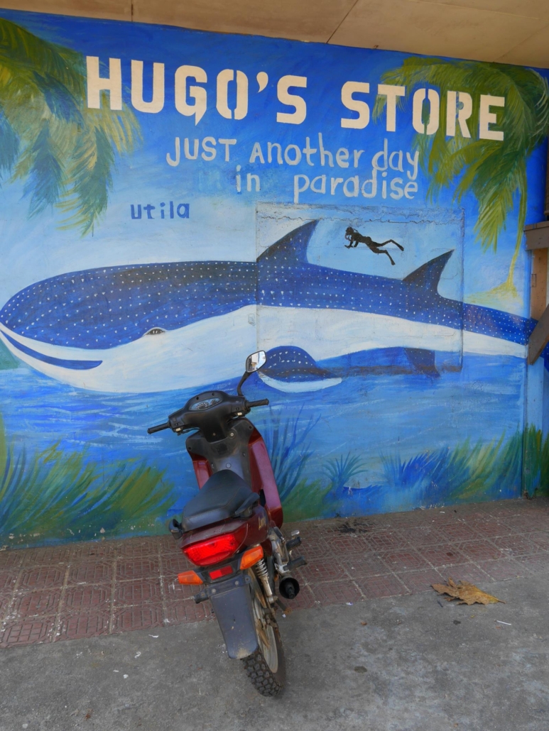Über Útila muss man wissen, dass sehr viele Touristen sehr unterschiedliche Motive haben, diese kleine Insel aufzusuchen. Da wären zum einen natürlich die Taucher! Tauchen ist auf Útila eine große Sache, aber gar nicht mal unbedingt nur wegen der guten Tauchplätze, sondern weil viele Backpacker auf ihrer Reise beschließen einen Tauchschein zu machen. Und das tun die Backpacker Mittelamerikas vornehmlich auf Útila! Entsprechend ist die Insel jung und nirgends werden so viele Tauchkurse in Relation zur Anzahl der Tauchbasen gegeben wie hier. Die Tauchplätze auf Útila sind gut – ich war dieses Mal sogar sehr positiv überrascht wie gut, aber dazu später mehr – allerdings sind sie sicherlich nicht Weltklasse, hier darf man sich nicht fehlleiten lassen. Ein weiterer Grund für Útila ist ganz sicher das karibische Lebensgefühl und es kennzeichnet diese Insel wie keine zweite. Gestresste Manager, die ihren Alltag im Anzug eingetauscht haben gegen ein Leben in Badehose und Flipflops – das ist hier keine Seltenheit, sondern eher normal. Der offizielle Slogan der Insel heißt: „ich reise morgen ab“. Seit vielen Jahren ist das nun ein Running Gag, weil man denjenigen, der diesen Satz sagt, ziemlich sicher auch am nächsten Abend wieder an der Bar trifft. Es fällt einem definitiv schwer, diese faszinierende Insel mit ihrem ganz eigenen Leben wieder zu verlassen. Flexibilität, Spontanität, Lebensfreude, all das sind Beschreibungen oder Attribute, die man hier auf  Útila „lernt“. Ich habe während meiner Besuche öfter Menschen getroffen, die mir berichteten, dass sie sich erst auf Útila richtig selbst kennen gelernt haben. Zeit hat hier definitiv eine andere Bedeutung als zu Hause, denn man trifft sich „zum Sonnenuntergang“ oder „zum Mittagessen“ – ohne Zeitangabe. Was hier in Deutschland unmöglich ist, klappt auf Útila für alle Beteiligten erstaunlich gut. Es ist noch gar nicht so lange her, als uns ein Kunde, ein Arzt, im Anschluss an seine Reise nach Útila geschrieben hat, dass dieser Urlaub sein Leben verändert hat und er uns immer dafür dankbar sein wird. Solch ein Feedback bekommen wir nur von Gästen, die auf Útila waren. ABER, man muss dazu sagen, Útila ist sicher nicht für jeden das richtige Ziel! Denn alles, was ich oben beschrieben habe, kann auch eine Schattenseite haben! Auf Útila läuft sicherlich nicht alles einwandfrei, es wird sich ein Problem ergeben und man wird sich denken  „wieso ist das jetzt passiert, das hatte ich mir anders vorgestellt“, aber genau dann kommt das von mir Beschriebene ins Spiel: Flexibilität, Spontaneität und Lebensfreude.