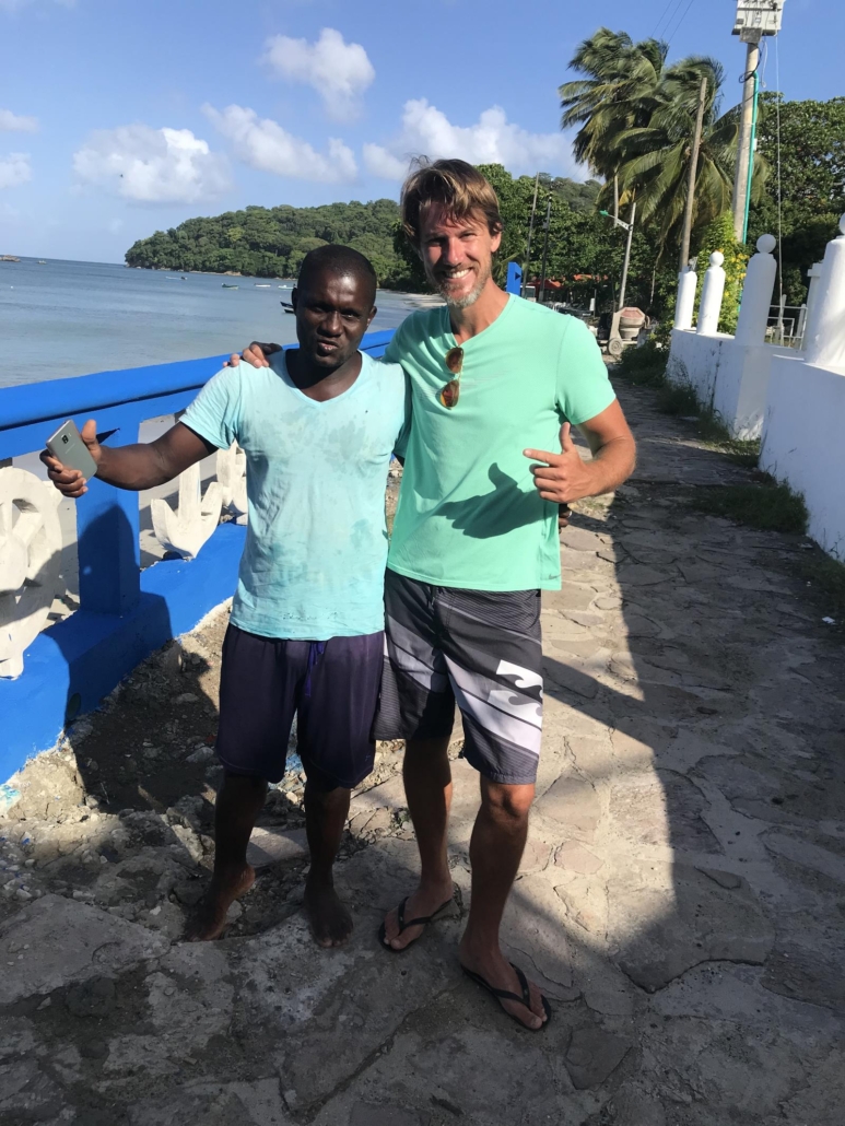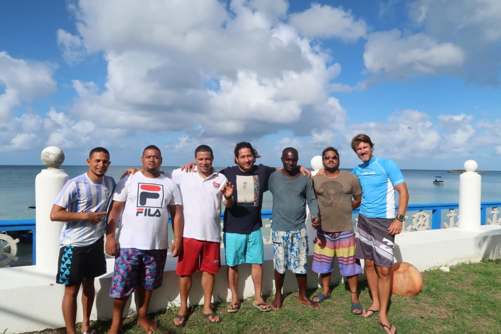 Bei der Rückkehr an die Tauchbasis lerne ich den Tauchbasenleiter Daniel kennen, der direkt auf mich zukommt. Er freut sich sichtlich und aufrichtig, dass es mir gefallen hat und strahlt wie eigentlich alle hier. „Ya Man, wir haben viele Haie hier. Schon immer“. Normalerweise kommt er immer mit zum Tauchen, aber gestern hatte sein Vater Geburtstag, weshalb es eine große Familienparty gab, entschuldigt er sich fast. Daniel ist genau die Art von Partner, die man in einem neuen Zielgebiet braucht. Er ist sofort sehr hilfsbereit, erklärt mir die Zusammenhänge, sowie Möglichkeiten und ist offensichtlich ein sehr aktiver „local“. So betreibt er zum Beispiel unter anderem die Dekokammer auf der Insel und verspricht mir auch sonst in allen Bereichen immer zur Seite zu stehen. Besser geht es kaum. Er umarmt mich direkt zum Abschied, was mich riesig freut. Irgendwie sind alle so herzlich hier. Das wirkt ansteckend. Morgen geht es weiter, ich kann es kaum erwarten.