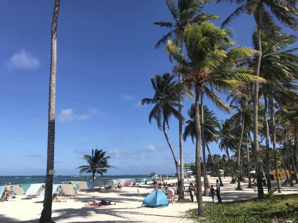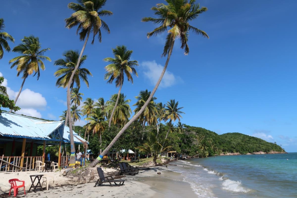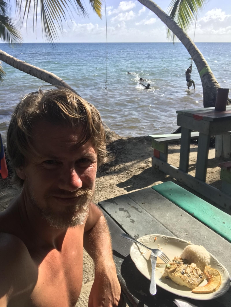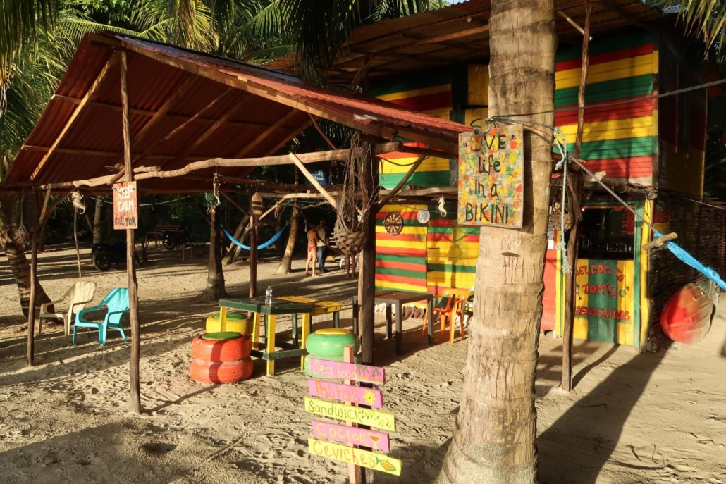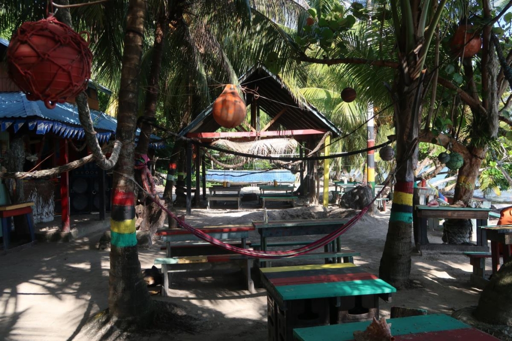 Rolands Bar befindet sich am einen Ende der Bucht direkt am Meer und wirkt zunächst unspektakulär. Auf den zweiten Blick kann man aber erkennen, dass die Bar durchaus etwas hat. Ein paar Bretterhütten, die irgendwie miteinander verbunden sind, wilde Palmen durchsetzen das ganze Areal, Hängematten wackeln dazwischen und Musik, wie man sie sich vorstellt. Laut und deshalb gefühlt immer ein bisschen blechern. Der Reggaeton-Beat lässt die Härchen auf der Haut mitvibrieren. Relativ schnell wird mir klar, dass man hier ganz sicher großartige Partys feiern kann. Mittags ist es aber erstmal „nur“ ein ganz normales, schönes, einheimisches Restaurant am Strand. Roland selbst wuselt durch die Bar, macht als Inselberühmtheit ein paar Fotos mit Touristen und präsentiert stolz per Mikro den Fischfang des Tages. Welchen ich mir dann auch gleich mal bestelle. Dabei komme ich ins Gespräch mit Roland und frage ihn nach seinem Namen. Wie sich herausstellt, war seine Mutter mit ihm in Deutschland schwanger und wollte ihm deshalb unbedingt einen deutschen Namen geben. Roland ist ein witziger Kerl, schätzungsweise 65 Jahre jung mit dem Körper eines 30-jährigen. Sein Gesicht verrät sein Alter. Es hat sicherlich schon ein paar prima Partys erlebt.