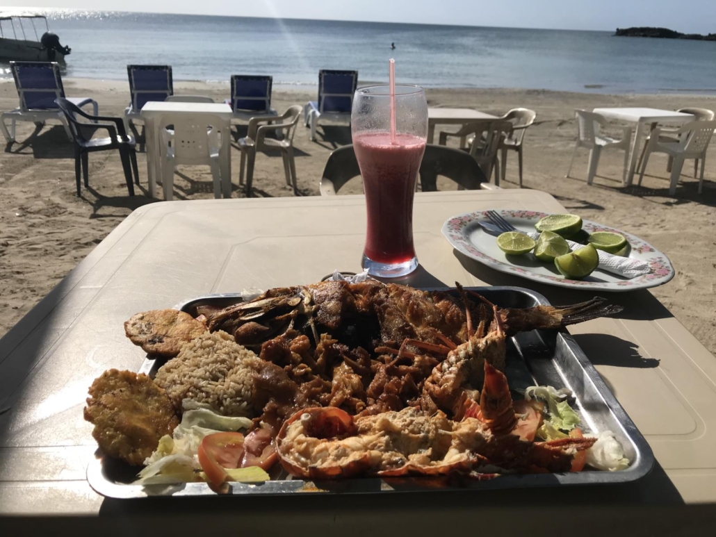 Zwei Restaurants am Southwest Beach haben es mir besonders angetan, und zwar das Divino Nino und das Arturo’s – zwei der oben beschriebenen Bretterbuden. Beide sind bekannt für ihre Fischplatten, bei denen frischer Fisch und Meeresfrüchte auf einem riesigen Teller lecker zubereitet werden. Diese gibt es für eine oder mehrere Personen und beim Servieren bekomme ich große Augen. Groß vor Staunen. Als ich da so sitze und einfach nur den Augenblick genieße, entdecke ich zwei Franzosen von der Fährfahrt. Sie sind ebenso wie ich auf Entdeckungstour und setzen sich zu mir. Ihre Begeisterung ist genauso groß wie meine, was fantastisch ist, denn so sprudelt die Freude einfach nur so aus uns heraus. Ihr Englisch ist etwas gebrochen, aber sehr charmant: „Very nice – paradise!“. Ich finde dieser Satz sagt alles.