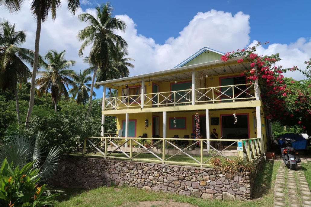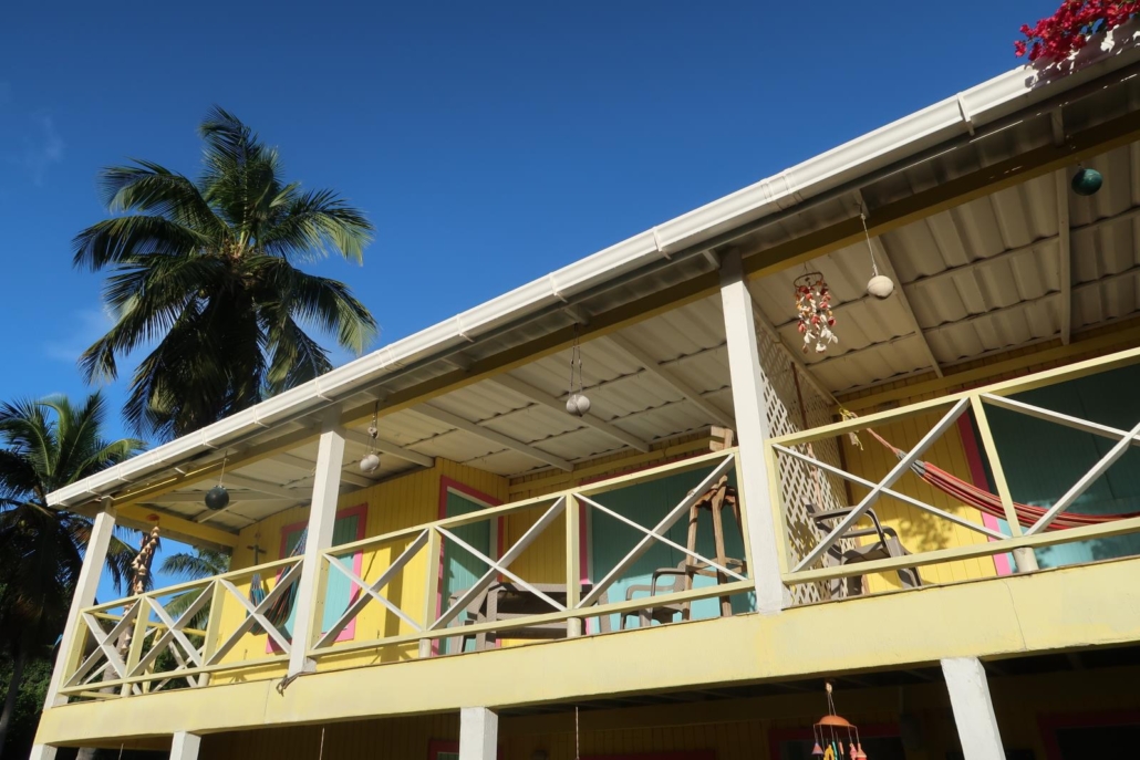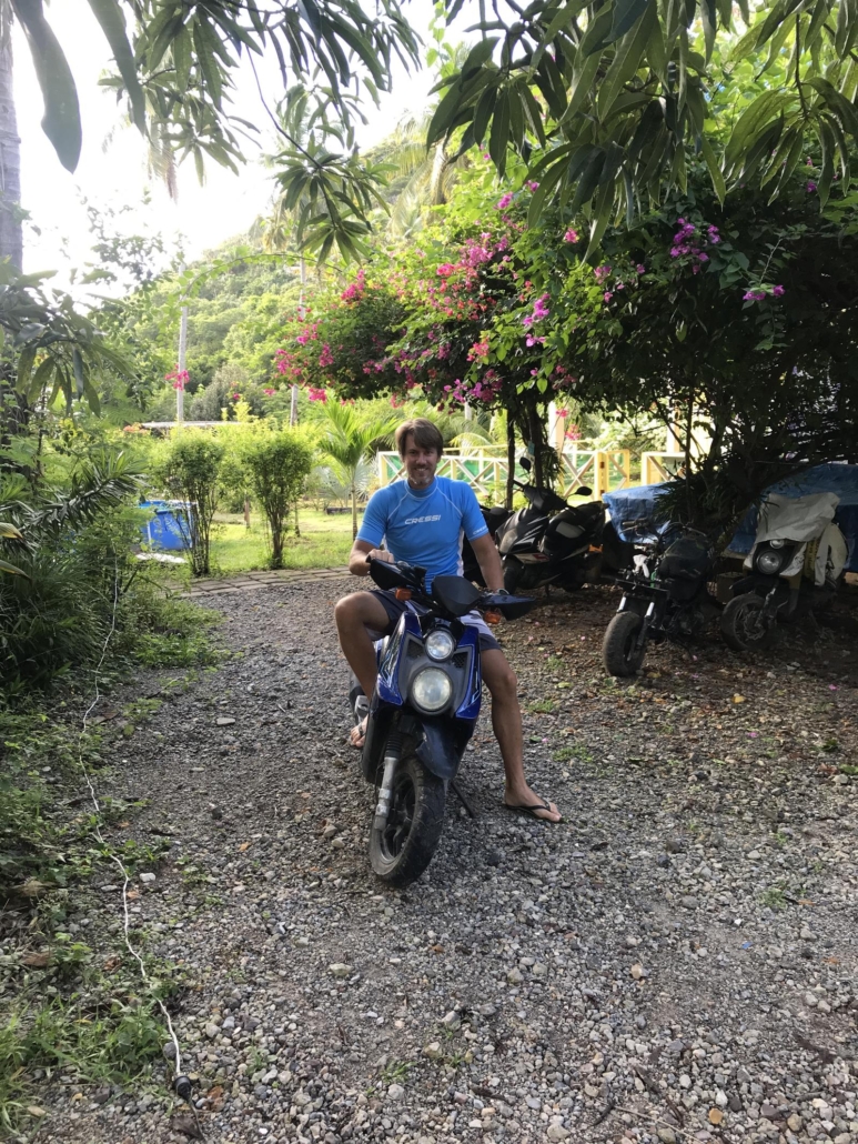 Als Unterkunft habe ich mir auf Providencia das Yellow Home Resort ausgesucht, was schlichtweg an den durchweg sehr guten Bewertungen auf allen einschlägigen Portalen lag. Um herauszufinden, dass diese alle berechtigt sind, brauche ich im Hotel angekommen nur ca. 5 Minuten. Die Anlage ist traumhaft angelegt, alles blüht oder strahlt grün und es wirkt beinahe so, als ob die Natur es gerne zugelassen hat, dass hier ein gelbes Hotel hineingesetzt wird. Doris und Cesar, die beiden Gastgeber, wobei Cesar seine Doris nur liebevoll „Amor“ nennt, sind so herzlich und rührig, dass man sich ganz schnell zu Hause fühlt. Ich bekomme zuerst einen frisch zubereiteten Saftsmoothie, danach erhalte ich ein kleines Briefing über die Insel und dann zeigen mir die beiden leicht demütig stolz mein Zimmer. Es gibt überhaupt nur drei davon: Zwei im ersten Stock des Gebäudes mit einem zauberhaften Balkon und klasse Aussicht und eines als alleinstehendes Häuschen mitten im Garten. Ich bekomme tatsächlich den kleinen Bungalow und bin wahrlich begeistert. So viel Liebe fürs Detail, mehr als ausreichend Platz und reichlich Stil. Gefühlt bin ich schon am selben Tag Teil der Familie, so herzlich und ehrlich ist das Strahlen der beiden, wenn sie mir bei einer Frage behilflich sein können oder Doris mir ungefragt noch einen Smoothie machen „darf“. Meine Freude darüber macht ihr offensichtlich großen Spaß. Dazu muss man sagen, dass das Yellow Home ein wenig abgelegen ist, weshalb man für den Alltag eigentlich ein Moped benötigt. Dies sollte man bei der Wahl dieses Hotels einfach berücksichtigen, wobei ich finde, dass man die Insel sowieso am besten mit einem Moped erlebt. Ich freue mich jeden Morgen, als ich nach einem überragenden Frühstück, bestehend aus einer variierenden Eierspeise, Kaffee, Smoothie und Toast, auf meinem Moped in Flipflops und Badehose durch Palmenhaine hindurch „zur Arbeit“ zum Tauchen fahre. Es sind nur ca. fünf Minuten, aber zum Laufen wäre es dann doch zu weit. Kurz bevor mir Cesar mein Moped übergibt, schraubt er noch schnell daran herum, was er in den Tagen danach auch jeden Morgen wiederholt. Praktisch, so eine eigene Werkstatt. Außerdem dreht er mir immer das Moped bereits in Fahrtrichtung herum, so dass ich nicht mehr ausparken muss, sondern gleich losfahren kann. Einfach liebenswert.