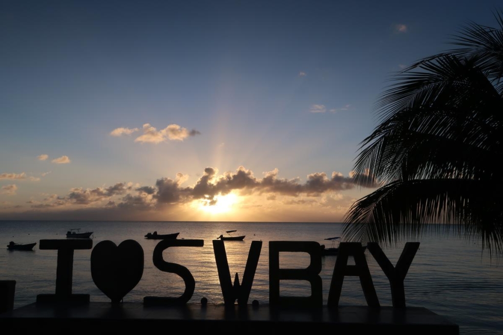 Das Schöne an Providencia ist, dass man viele Leute kennen lernt und sich auch tatsächlich mit ihnen unterhält. Klingt komisch, aber ich möchte das gerne erklären. Ich habe zum Beispiel an dem Strand bei Morgan’s Head vier Franzosen wiedergetroffen, wir haben ein bisschen gequatscht und danach gemeinsam den farbenfrohen Sonnenuntergang genossen. Ähnlich ist es in den Restaurants, immer wieder trifft man bekannte Gesichter von irgendwo auf der Insel, denn so groß ist sie ja nicht. Sicherlich entscheidend für die vielen Gespräche ist aber auch die Tatsache, dass es auf Providencia nur an zwei Orten Wifi gibt! Selbst wenn Hotels Wifi wollen würden, sie können es schlichtweg nicht anbieten, weil es keine Verbindung gibt. Ich finde das klasse, das Handy rückt plötzlich/endlich mal wieder in den Hintergrund und es ergeben sich spannende Gespräche. Genau bei einem solchen Gespräch habe ich übrigens, wie eingangs erwähnt, das erste Mal von Providencia erfahren.