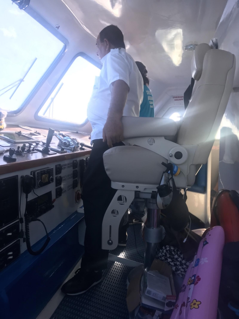 Warum man früher dort sein sollte, erklärt sich mir jetzt auch. Nach und nach gehen alle Gäste an Bord, wobei wer zuerst kommt, eben auch zuerst den Sitzplatz auswählen kann. Mir bleibt schließlich nur noch ein Platz auf einer Bank in der ersten Reihe – direkt neben dem Kapitän. In Sachen Seegang der ganz klar schlechteste Platz des ganzen Schiffes. Was soll’s, mir war noch nie schlecht auf See! Ein sehr sympathischer junger Mann, der vermutlich auch gerne etwas Autorität ausstrahlen würde, verteilt voluminöse Plastikbeutel, die von einigen Gästen fast beleidigt zurückgewiesen werden. Ich stecke einen davon ein, alles andere fände ich unhöflich. Die Fähre legt ab und der Spaß beginnt. Überraschend schnell werden links und rechts die Tüten auf ihre Funktionalität überprüft. Wenn mir die Leute nicht so leidtun würden, wäre es eigentlich ganz lustig, denn es hat etwas von einer übertriebenen Komödie. Für mich geht die erste Stunde halbwegs gut vorüber, aber es schaukelt gewaltig und mir ist klar, dass das keine „Wir fahren da mal schnell rüber“-Nummer ist. Dann passiert es: Ich merke, dass sich meine Welt ab jetzt ändern wird. Ich zücke die unscheinbare, graue Rettungstüte und mache das Ding mit einem Schwall voll. Einfach so. Der Kapitän lächelt mir männlich zu und sein sehr empathischer Mitarbeiter nimmt mir wie völlig selbstverständlich meine Tüte ab, um mir sogleich eine neue zu bringen. Wie ich später erfahre, ist genau das seine einzige Aufgabe auf dieser Fähre: Die Spuckbeutel entsorgen. Als ich in die Kabine zurückschaue, sehe ich, dass die meisten Gäste schlafen, was ich bemerkenswert finde. Der Kapitän lacht und erklärt mir, dass hier immer wieder irgendwelche ganz Harten hereinkommen, die Tüte ablehnen mit dem Kommentar, dass sie ja selbst Kapitän wären, dann aber doch davon Gebrauch machen (müssen). Alles in allem ist der Spu(c)k für mich nach fünf Minuten beendet und der Rest der Fahrt verläuft erfreulicherweise locker. Trotzdem ein komisches Gefühl, ich wurde tatsächlich das erste Mal seekrank.