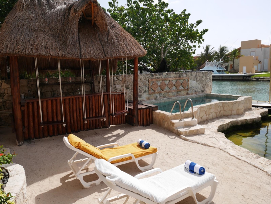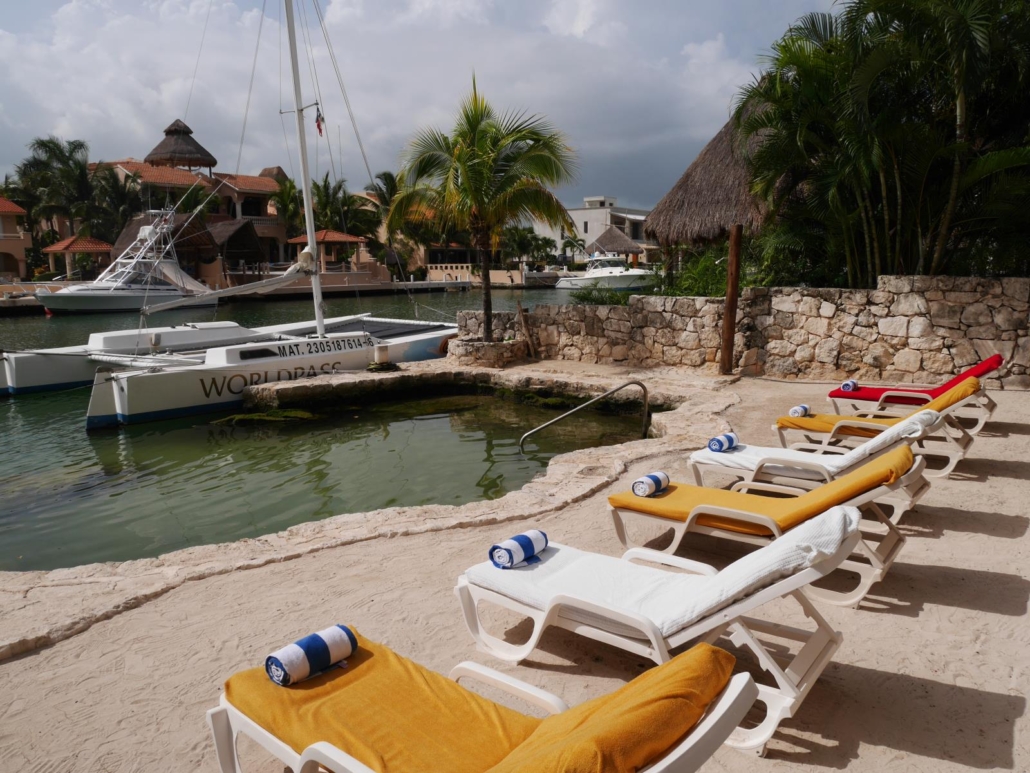 Wer in Mexiko seinen Focus auf die Cenoten legen möchte, was ich gut nachvollziehen könnte, für den haben wir noch ein weiteres, neues Hotel im Programm: Die Cenoten liegen ja südlich von Playa del Carmen und man benötigt ca. 30-45 Minuten zu eben jenen Cenoten, abhängig davon welche angefahren wird. Wenn man ein bis zwei Tauchtage für die Cenoten einplant, ist das kein Problem und stört auch gar nicht, aber wenn eben mehr Cenoten-Tauchgänge geplant sind, dann kann das auf die Dauer etwas zeitraubend sein. Deshalb haben wir mit dem „Boutique Hotel“ in Puerto Aventuras ein kleines, familiäres Hotel mit nur 6 Zimmern neu ins Programm aufgenommen. Puerto Aventuras ist ebenfalls keine echte Stadt, sondern, ich will mal sagen, ein touristisches Zentrum. Es gibt Hotels, einen Hafen, Geschäfte, Restaurants, Ausflugbüros, Ferienhäuser, etc.. Das Boutique Hotel liegt im ruhigen Bereich von Puerto Aventuras, direkt an einem Wasserarm, der sich wie in Venedig in den Ort hineinverzweigt. Die sechs Zimmer blicken alle aufs Wasser und sind stilvoll eingerichtet. Zum Strand kann man über die Straße laufen und den Gästen wird das Frühstück sogar aufs Zimmer gebracht. Der Clou sind aber Fahrräder und Golfcarts, die ausgeliehen werden können, damit die Gäste bei Bedarf die Möglichkeit haben, ins Zentrum fahren zu. In Puerto Aventuras gibt es ebenfalls eine Pro Dive Tauchbasis, die als Cenoten-Ausgangspunkt dient. Direkt hinter Puerto Aventuras beginnen die Cenoten in südlicher Richtung, von hier aus kann man also diese Süßwasserhöhlen perfekt erkunden.