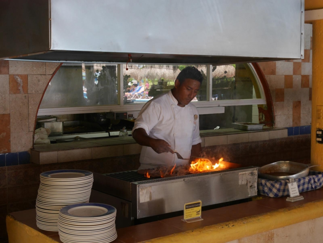 Bevor ich nun weiter berichte, möchte ich kurz noch etwas Generelles zu Mexiko, genauer gesagt zu Yucatán, sagen. Der Ort Cancun scheidet von vornherein aus – zu voll, zu viele und große Hotelbunker und überhaupt von allem viel zu viel. Der nächste Ort weiter südlich ist dann Playa del Carmen und sicherlich auch sehr touristisch, aber ganz anders. Playa del Carmen ist eine angenehme Mischung, denn es gibt eine Vielzahl an kleinen schönen und sogar großen, stilvollen Hotels, wobei man, wenn man möchte, den Trubel in seinen eigens gesteckten Grenzen halten kann. Wir haben zum Beispiel drei Hotels am nördlichen Ende der touristischen Fußgängerzone, der 5ten Avenida, im Programm, von denen man sehr gut und problemlos ins Zentrum bummeln, dort einkaufen und sich treiben lassen kann. Wer möchte, kann aber auch nur zum Strand und außerdem zum Tauchen gehen. Natürlich ist der Strand jetzt nicht idyllisch verwaist, aber dadurch, dass er recht breit ist, verläuft sich alles ein wenig und man kann sich an den Strand legen, wie man möchte: ganz entspannt mit dem Handtuch in den weißen Sand oder mit einem kühlen Getränk auf der Sonnenliege eines stylischen Beachclubs. Generell ist Playa del Carmen aber natürlich nur für Leute geeignet, die, wenn sie aus dem Hotel gehen, direkt etwas „machen“ wollen. Unterm Strich, wer weiß, dass Playa del Carmen, kein verschlafenes Nest, sondern ein touristischer Ort mit vielen Angeboten ist, wird ganz sicher seine Freude an der Vielzahl der Unternehmungsmöglichkeiten haben. Ich persönlich weiß mittlerweile genau dies dort zu schätzen, obwohl ich idyllisch einsame Orte à la Adrasan in der Türkei oder die British Virgin Islands sehr sehr gerne mag. Beides hat was! In Playa del Carmen habe ich auf jeden Fall bereits mein persönliches Lieblings-Frühstückrestaurant gefunden. Dort gibt es alles! Und das auch noch lecker… Von einem Bagel mit Lachs und Frischkäse, über Früchteplatten, deftigem, mexikanischen Frühstück, bis hin zu Waffeln mit Blaubeeren oder Crêpes mit Schoko-Bananen-Füllung ist alles dabei. Dazu ein frischer Saft oder ein kühler Mango-Smoothie – sensationell!