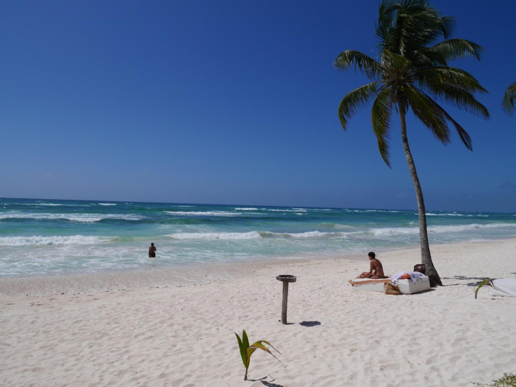 1. Ihr bucht euch ein Hotel direkt in Tulum Beach und verbringt demnach auch viel Zeit am eigenen Hotelstrand.