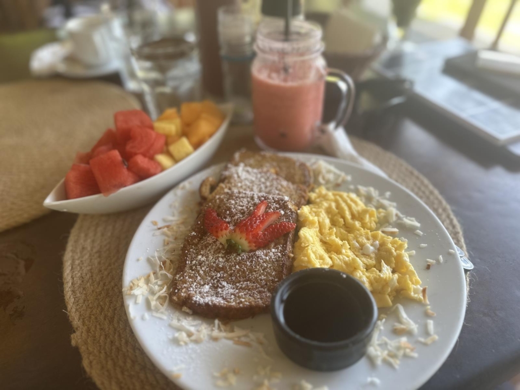 Santa Catalina ist seit meinem Besuch eines meiner absoluten Herzensziele, nicht nur weil ich hier mit die schönsten Großfischbegegnungen meiner Taucherkarriere hatte, sondern weil der kleine Ort wirklich besonders ist. Es gibt zum Beispiel mehrere kleine Cafés, die sowohl zum Frühstück als auch nachmittags einfach nur herrlich sind. Morgens habe ich mich dort immer mit leckeren Bowls, French Toast oder Smoothies für die Tauchausfahrten gestärkt, während es nachmittags saftiges Bananenbrot und frischen Kaffee gab. Man trifft dort auch immer wieder die anderen Taucher und kommt so unweigerlich ins Erzählen. Alternativ zum Tauchen gibt es am Ende des Ortes eine Surferbar direkt am Wasser, die mit gemütlichen Daybeds zum Lesen oder Entspannen einlädt. Ich habe es geliebt dort nachmittags einfach nur das Ambiente und die tiefstehende Sonne zu genießen. Abends gehen dann die warmen Lichter des Ortes an und die charmanten Restaurants zaubern ausgezeichnete, lokale Gerichte auf die Teller. Nichts ist aufdringlich oder gekünstelt, ganz im Gegenteil. Selten bin ich so schnell irgendwo angekommen und konnte ins Entspannen umschalten…