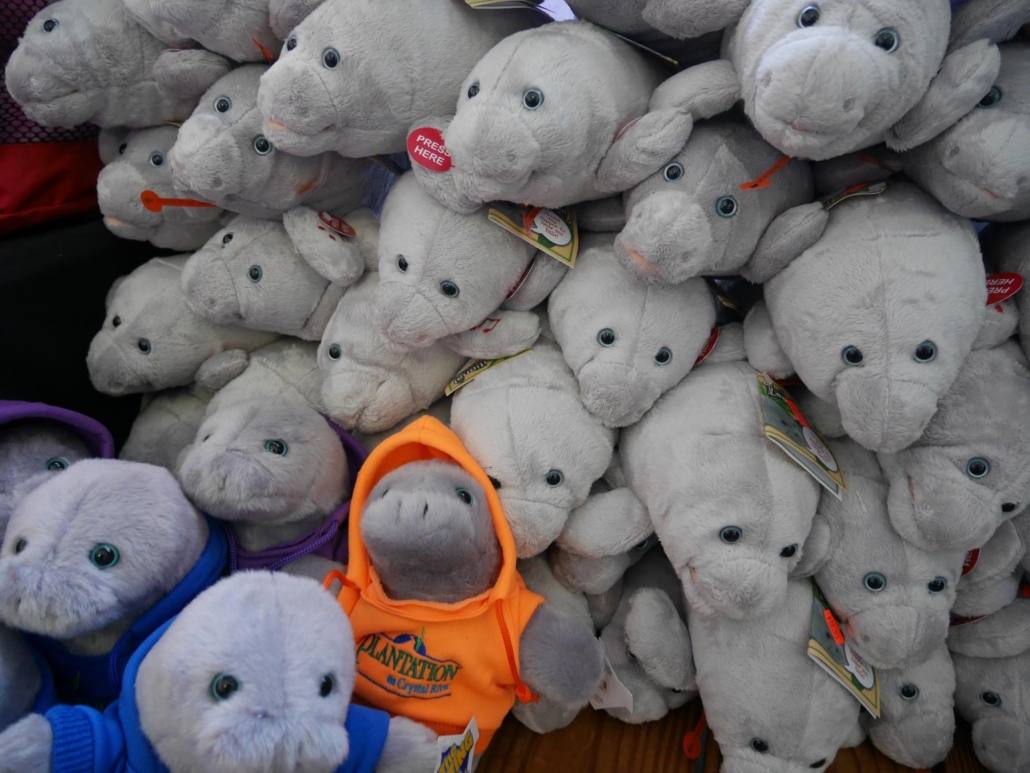 Als ich in Crystal River ankomme (Crystal River ist sowohl der Name für den Fluss, als auch für den Ort, der sich an dem Fluss befindet), sehe ich sofort, dass die Manatees hier eine große Sache sind, denn ein Schild mit der Aufschrift „Crystal River – Home Of The Manatees“ begrüßt mich. Am Straßenrand sieht man viele Figuren, Schilder und Plakate von den Helden des hiesigen Flusses, allesamt völlig einzigartig. Sogar ein übergroßes, lachendes Manatee mit Sonnenbrille und Tropicana-Shirt winkt mir am Straßenrand zu. Hier bin ich richtig, so viel steht fest.