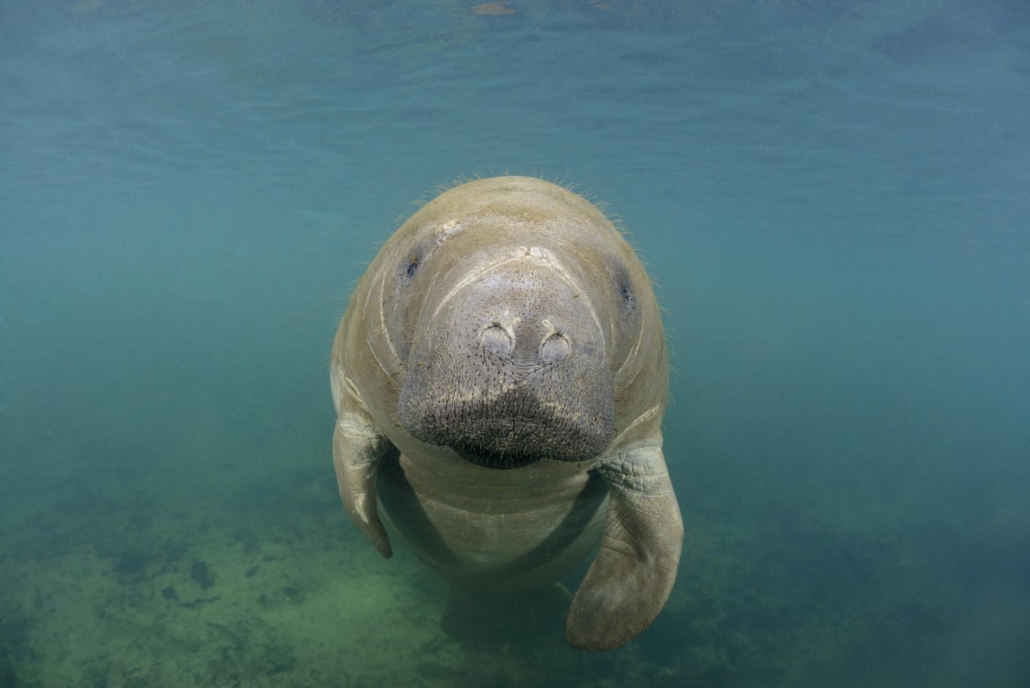 Manatees bilden zusammen mit den Dugongs (die der ein oder andere vielleicht aus dem Roten Meer kennt) die Ordnung der Seekühe, wobei sie sich auffällig in ihrer Schwanzflosse, auch Fluke genannt, unterscheiden. Manatees haben eine runde Schwanzflosse, während die der Dugongs gespalten ist.