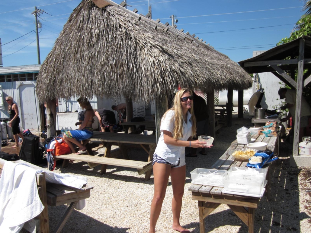 Abends treffen wir uns mit anderen Tauchern an einer wunderschönen Sunset-Bar auf einen Cocktail direkt am Meer. Es gibt leckeren Fisch, Fingerfood wie man es im Urlaub mag und Key Lime Pie (berüchtigter Zitronen-Kuchen der Florida Keys) – genau so stelle ich mir die Karibik vor…