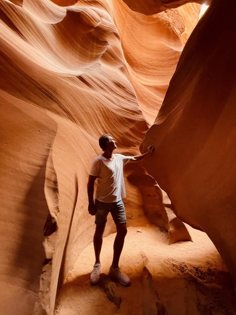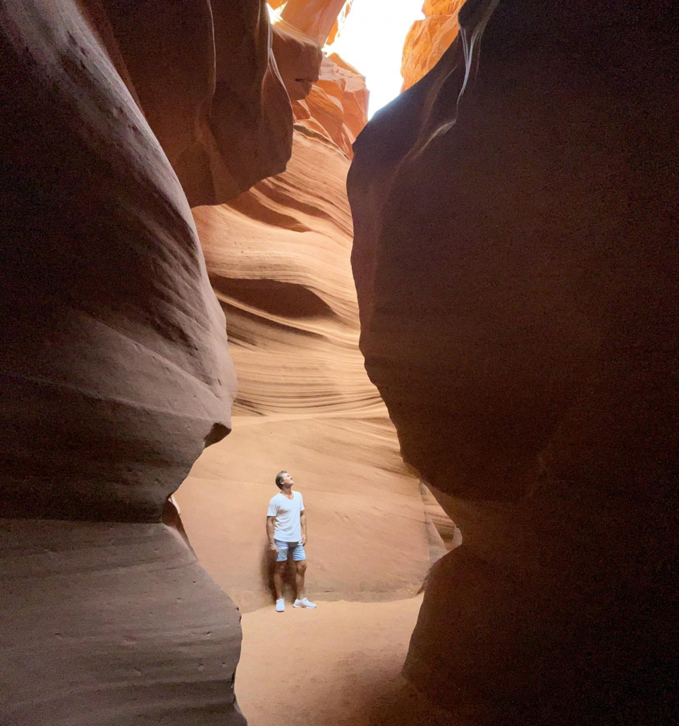 Wie oben schon erwähnt, wenn man ganz vorne in der Gruppen ist, kann man diese Art von Fotos besonders gut machen. Unser Guide war sehr geduldig, aber es war definitiv keine Zeit, dass hier jeder mal nach vorne konnte, um „sein“ Bild zu machen. Ich finde aber gerade diese Bilder besonders schön, denn sie zeigen ein bisschen die Enge des Canyons und sind natürlich auch eine schöne Möglichkeit für ein Bild mit sich selbst…