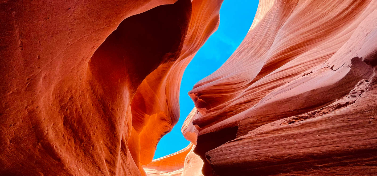 - Ein Slot Canyon besteht typischerweise aus weichem Gestein, welches sich übereinander türmt. Daher kommen auch die geschichteten Streifen im gesamten Antelope Canyon.
