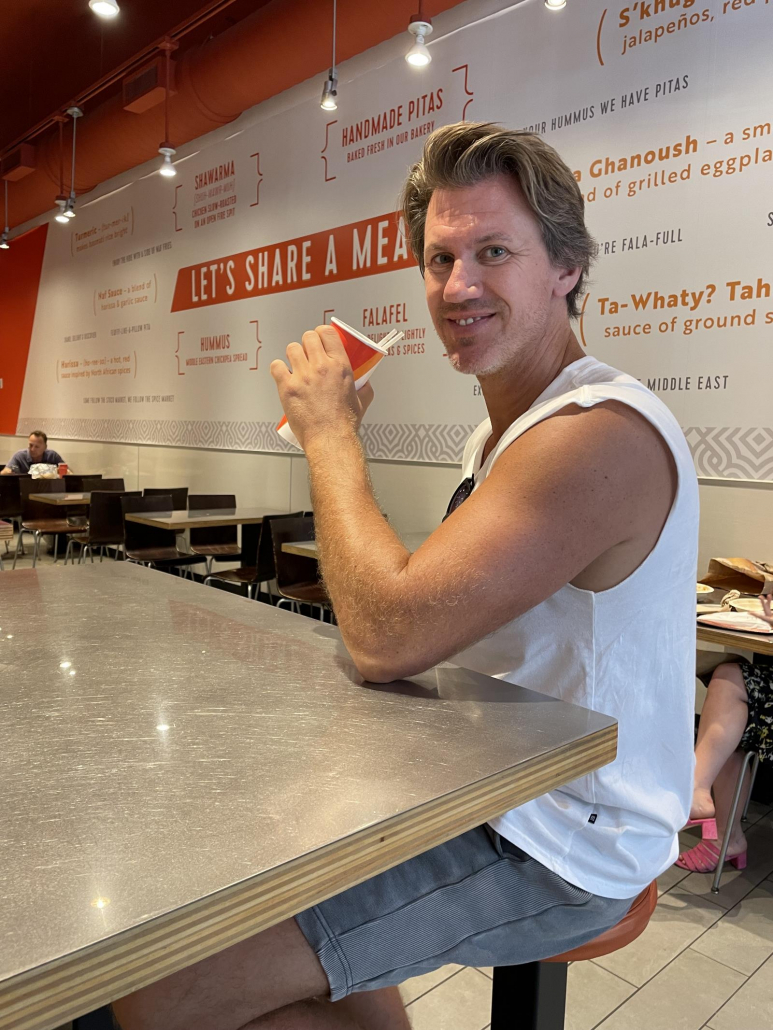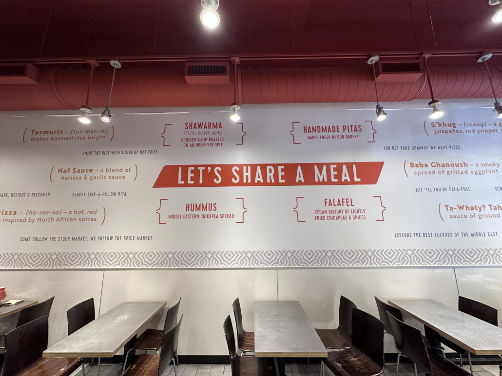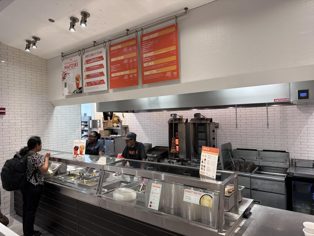 Hier bekommt man leckere Pitas mit Fallafel, Humus und Baba Ganoush (Püree der arabischen Küche aus Auberginen und Sesampaste) und schmackhaften Saucen.