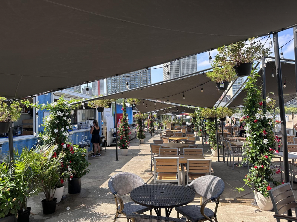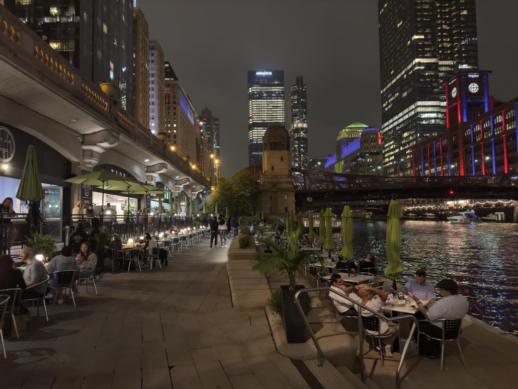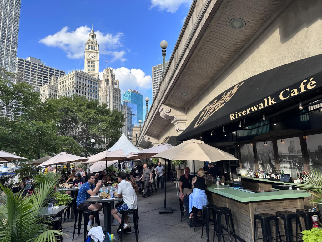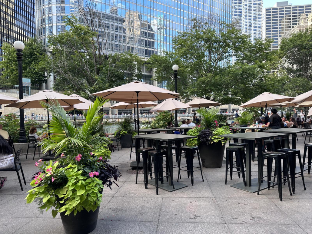 Der einfachste und zugleich praktischste Tipp überhaupt. Ganz zentral, direkt am Riverwalk findet man diese mainstreamige Restaurant mit Blick auf den Chicago River. Sicherlich nicht die einfallsreichste Empfehlung, aber genau deshalb wollte ich es hier mit auflisten. Ja, man sitzt auf Plastikstühlen. Ja, man isst nicht vom besten Geschirr. Aber dafür wird man mit einem super Ambiente belohnt, das sich komplett nach Urlaub anfühlt. Die Karte ist übersichtlich mit Burger, Sandwiches, Chicken Wings & Salaten, aber alles war super lecker und die Cocktails haben die großartige Sommernachtsstimmung ideal ergänzt. Die richtige Erwartungshaltung ist hier entscheidend…