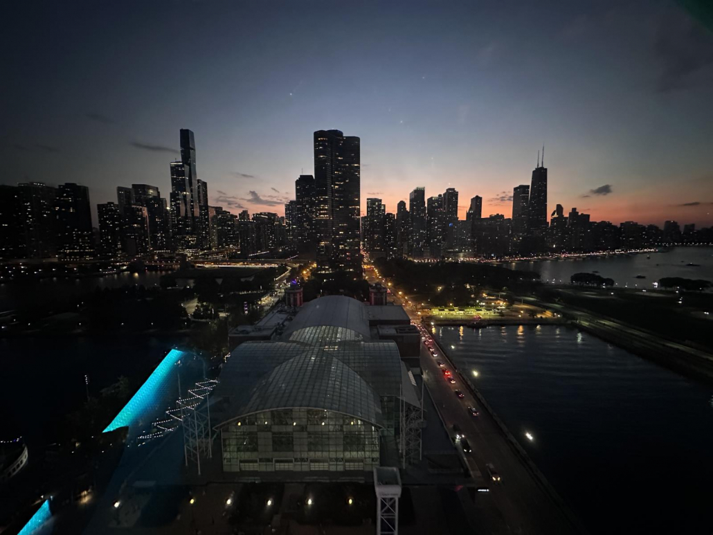 Natürlich ist der Besuch des Skydecks zu jeder Tages- und Nachtzeit ein besonderes Erlebnis. Aber wenn man es sich zeitlich einrichten kann, ist es nachmittags sicherlich nochmal ein wenig spektakulärer. So hat man nämlich das beste aus beiden „Welten“, sprich die Aussicht sowohl bei Tageslicht, als auch mit den Lichtern der Nacht. Die Sonne kommt nachmittags auch von des Landesweite, sprich Richtung Lake Michigan hat man ein entsprechend warmes Licht.
