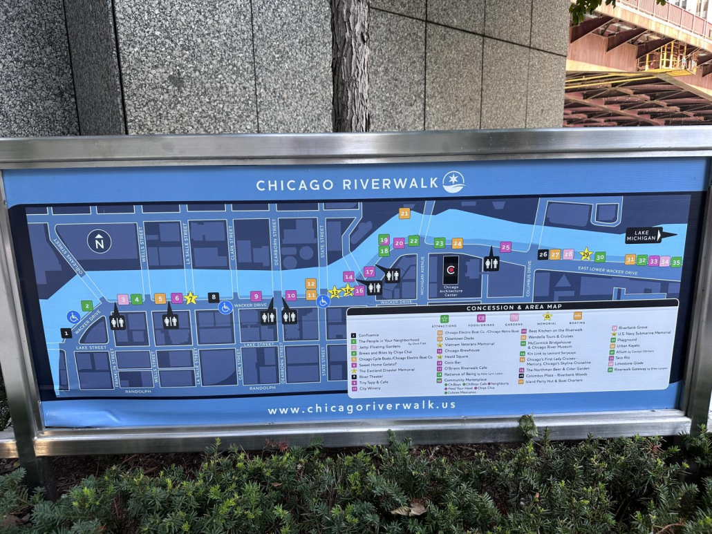 Von der Reihenfolge der Attraktionen habe ich mit den Top-Attraktionen – unabhängig von der Lage – begonnen (Willis Tower, 360 Chicago, River Walk, Boat Architectre Tour & Navy Pier).